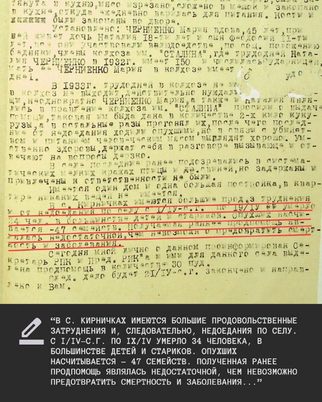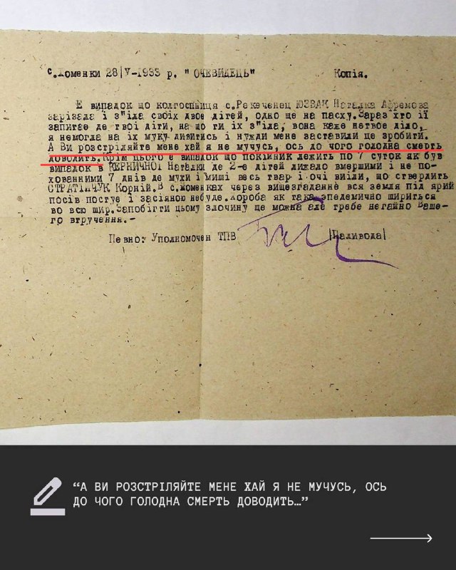Це підтверджують численні свідчення людей, які збереглися в архівах. Днями ми передали Музею Голодомору оцифровані копії понад 1000 кримінальних справ періоду геноциду українців. Деякі цитати зі свідчень - на фото.