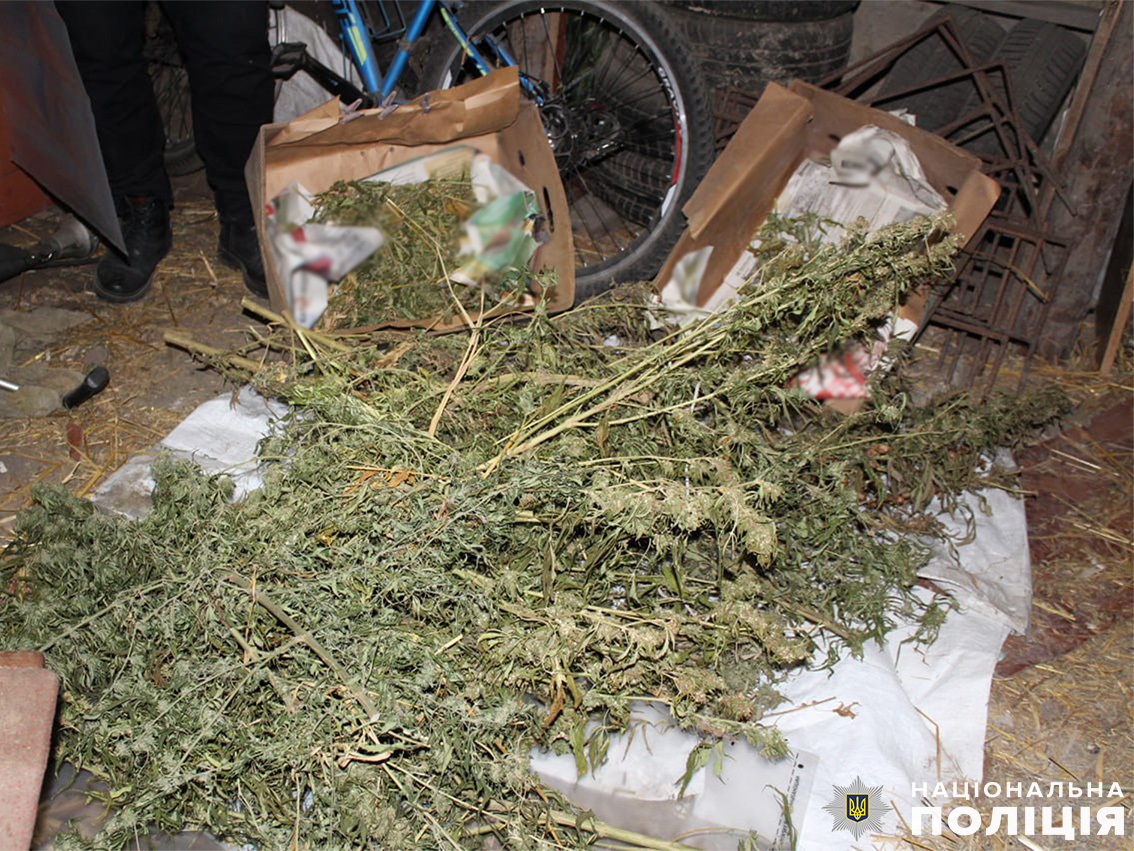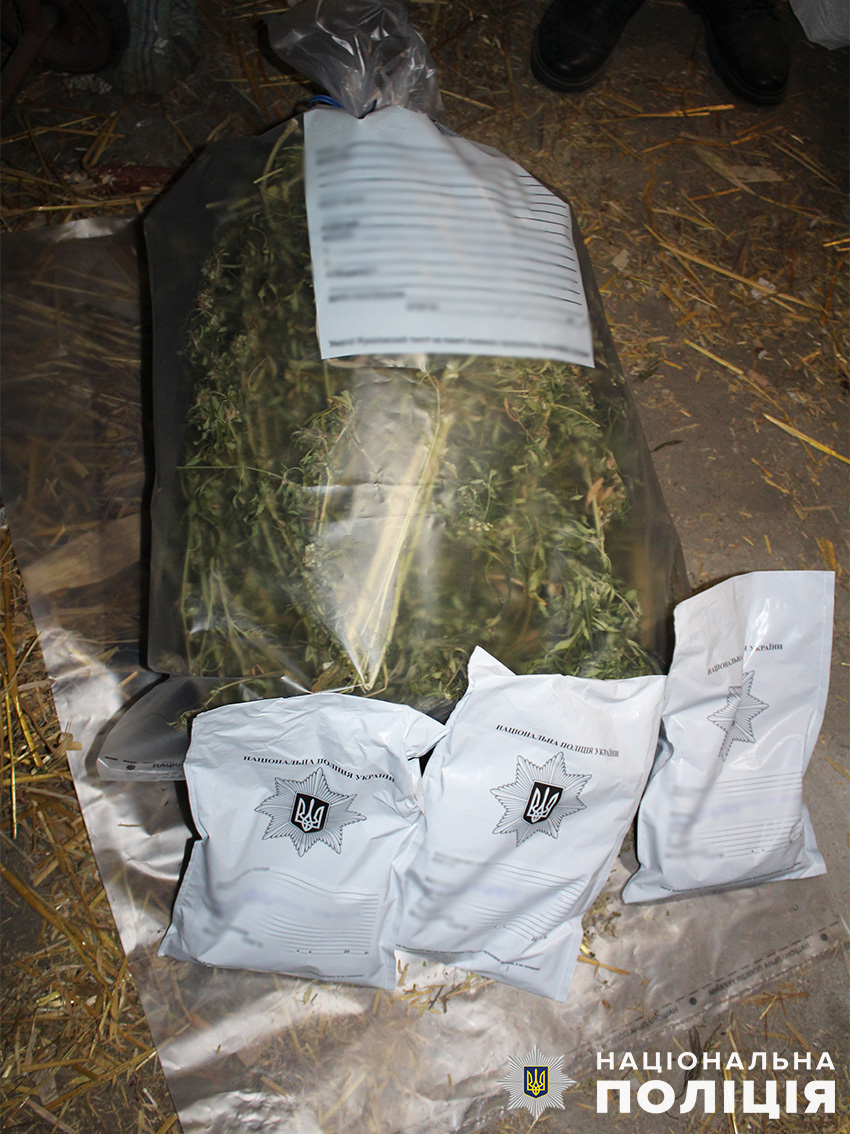 В ході слідчої дії дізнавачі та оперативники кримінальної поліції Ніжинського райуправління із залученням кінолога зі службово-розшуковим собакою виявили в будинку та господарській споруді фігуранта паперові згортки та поліетиленові пакети з подрібненою речовиною рослинного походження, висушені стебла з листям, зовні схожим на коноплі. Загальна маса вилученого становить близько пів кілограма.