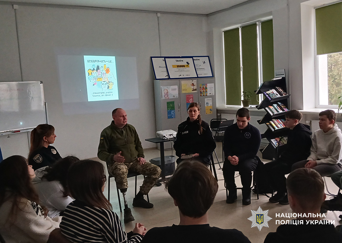 На Чернігівщині тривають просвітницькі заходи для учнівської молоді, що присвячені патріотичному вихованню, темам безбар’єрності та соціальної інтеграції ветеранів. Поліцейські служби освітньої безпеки спільно із ветеранами війни, які нині працюють у поліції, зустрілися зі старшокласниками у Чернігові та Ніжині.