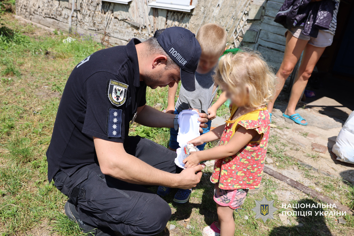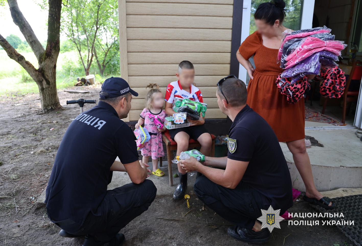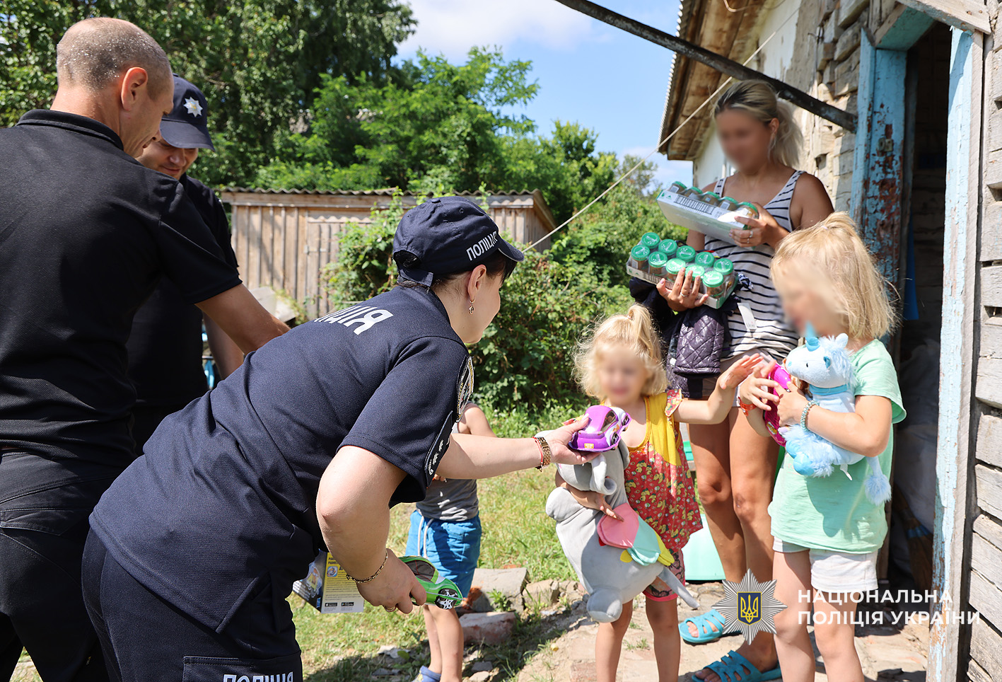 Під час візитів поліцейські та волонтери передали родинам продуктові набори, дитяче харчування, речі першої необхідності, а також розвиваючі ігри для малечі. Для дітей, які пережили вимушене переселення, особливо важливо відчувати турботу, підтримку та бодай трішки радості у ці складні часи.