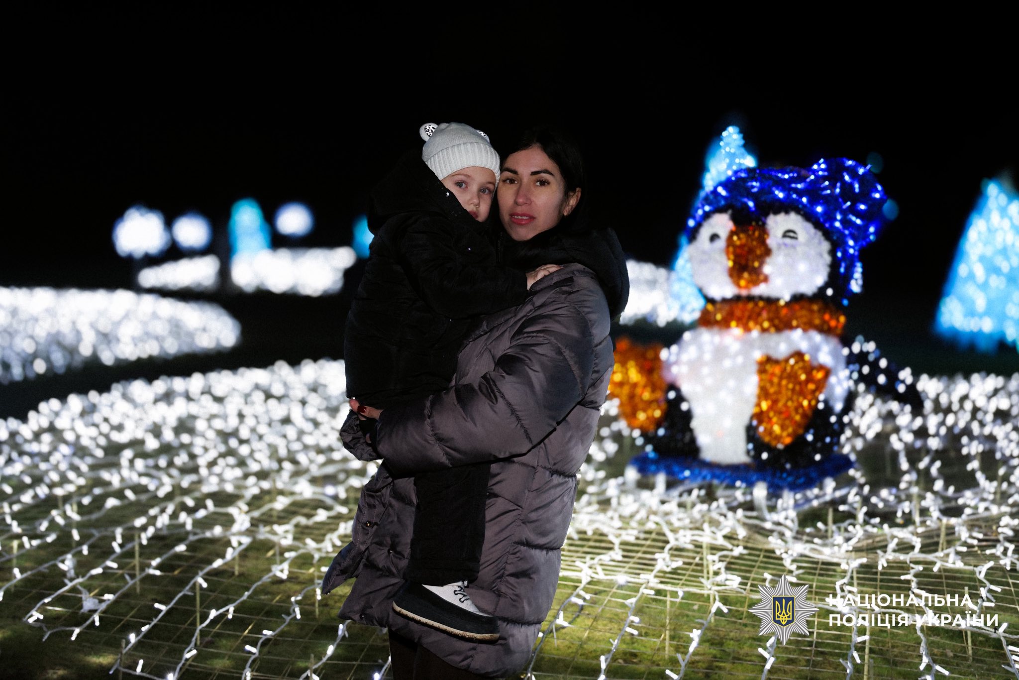 Святкові інсталяції, різдвяні ялинки, тепле світло ліхтарів створюють атмосферу казки — тихої, ніжної, не гучної. Поліцейські управління кадрового забезпечення обласної поліції провели екскурсію парком членам сімей наших полеглих Героїв. Організували захід за підтримки профспілки та спортивного клубу поліції Чернігівщини.