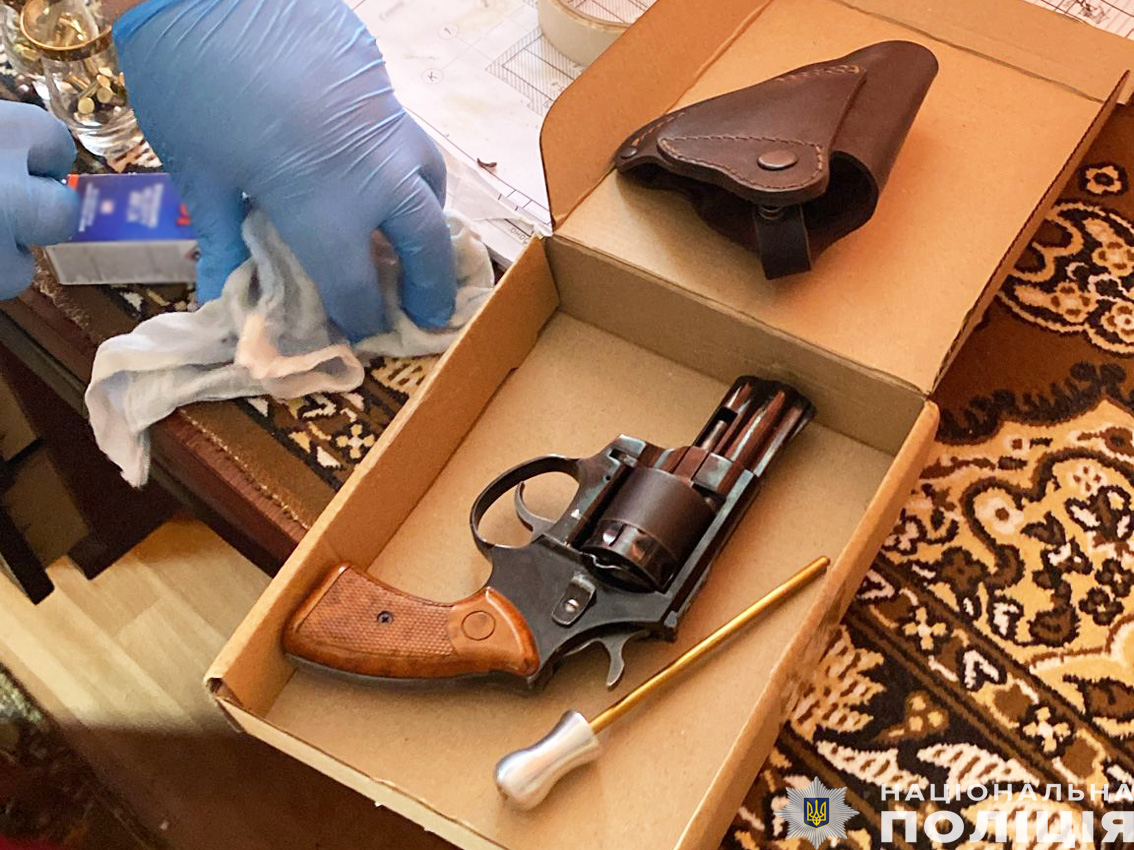 В ході санкціонованих обшуків у зловмисника вилучили три пістолети з ознаками переробки, близько сотні набоїв різних калібрів, частини зброї, кейси від стартових пістолетів, банківські картки, мобільні телефони та інші речові докази. Вилучене направлено на експертизу.