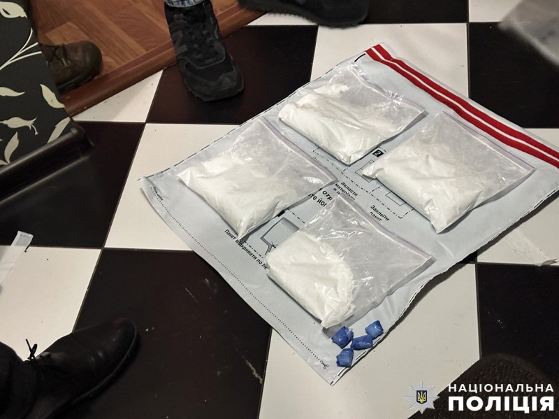 За силової підтримки бійців КОРД поліцейські провели низку санкціонованих обшуків у фігурантів, в ході яких виявили та вилучили: амфетамін, вагою 1 кг 100 грамів, солі «Alfa-PVP», розфасовані у 50 пакунків; пакунок з речовиною «Alfa-PVP» загальною вагою 615 грамів, пігулки МДМА («екстезі») – 88 штук, а також психотропну речовину «амфетамін» в рідкому агрегатному стані, пластикові каністри з хімічними рідинами, які використовуються для синтезу психотропних речовин, респіраторні маски, захисні окуляри, засоби для фасування наркотиків, електронні ваги.