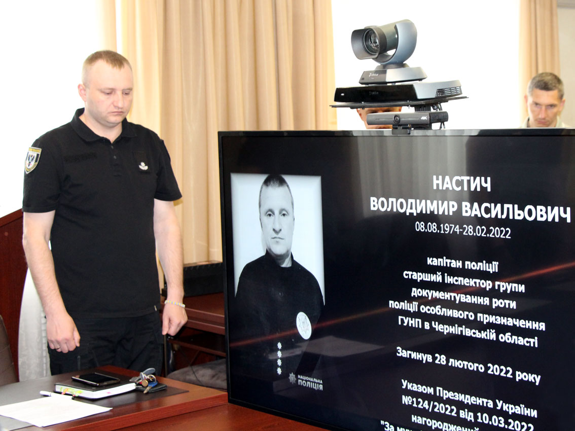 Сьогодні і щомісяця поліція Чернігівщини проводить у всіх територіальних підрозділах пам’ятні заходи з вшанування загиблих колег.