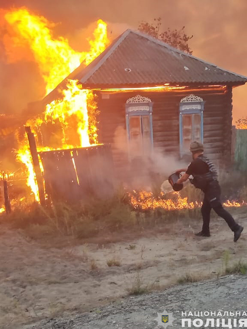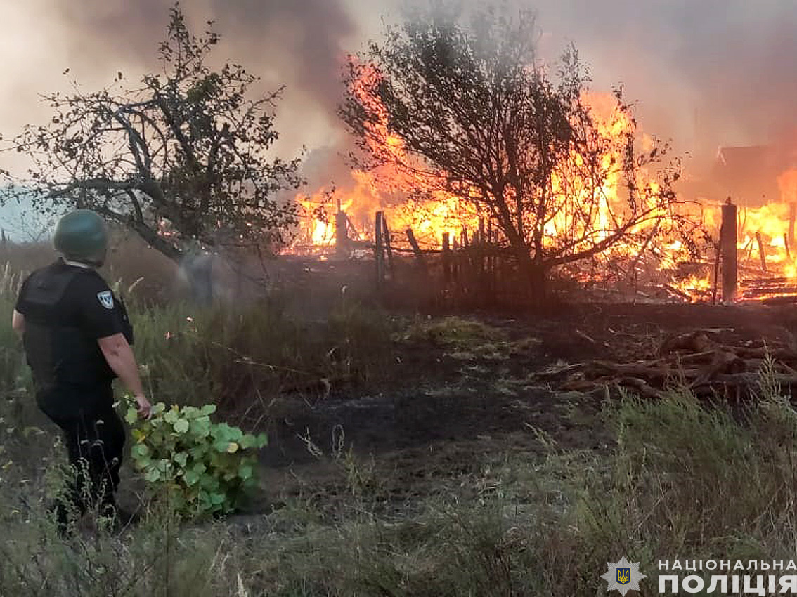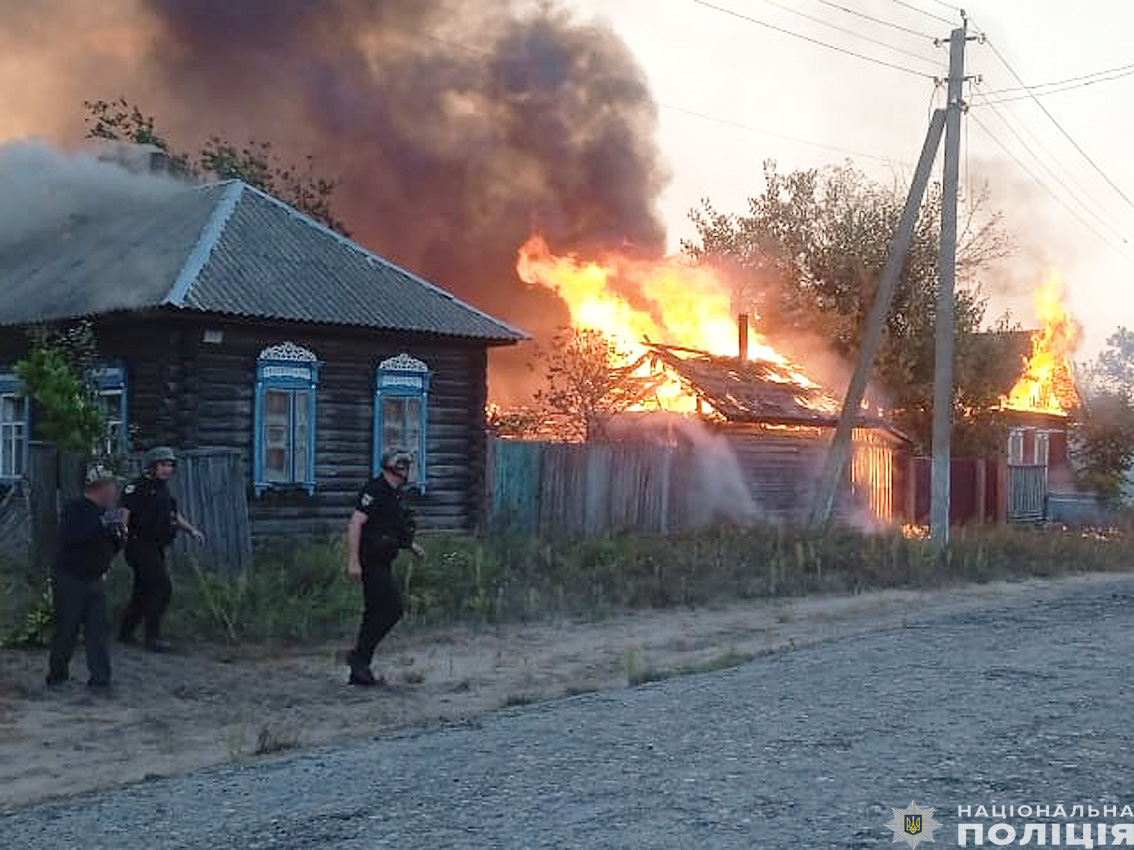 Поліцейські допомагають гасити будинки селян на прикордонні Чернігівщини, які горять від обстрілів росіян, та документують злочини армії рф