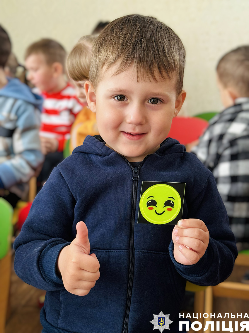 На завершення зустрічі діти отримали від поліцейських подарунки – світловідбиваючі наклейки, адже носіння таких елементів на одязі в умовах недостатньої видимості та в темну пору доби є вкрай важливим.