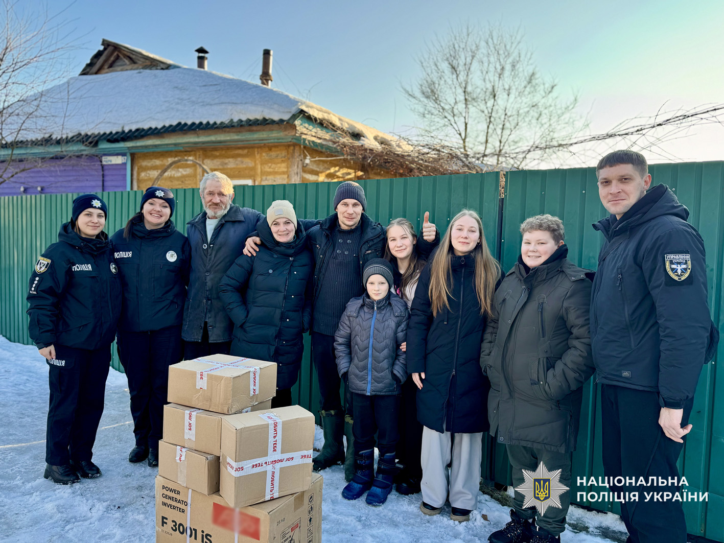 У межах Всеукраїнської акції «Енергія тепла» поліцейські сектору дотримання прав людини та ювенальні поліцейські спільно з громадським формуванням «Капеланський патруль» передали п’ять генераторів родинам з дітьми у прикордонній Корюківській громаді. Допомогу отримали сім’ї, які опинилися у складних життєвих обставинах, багатодітні родини та внутрішньо переміщені.