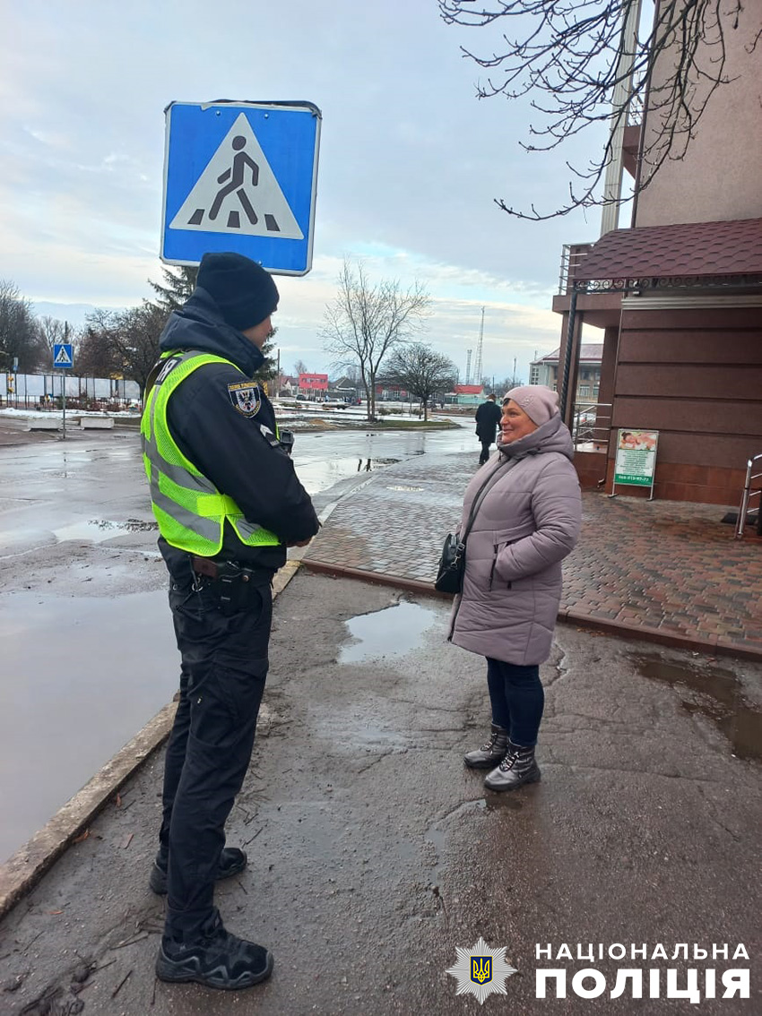 Спілкуючись з пішоходами, поліцейські акцентують їхню увагу на необхідності використання світловідбивних елементів на одязі або речах, щоб бути помітними у темний час доби чи в умовах недостатньої видимості. Також нагадують, що переходити дорогу можна лише у встановлених місцях, та що обов’язково слід посилювати уважність при наближенні до проїзної частини.