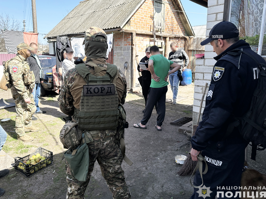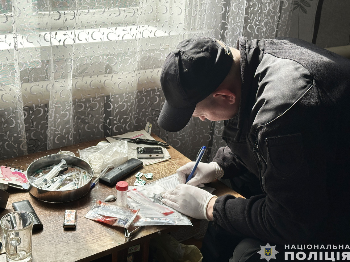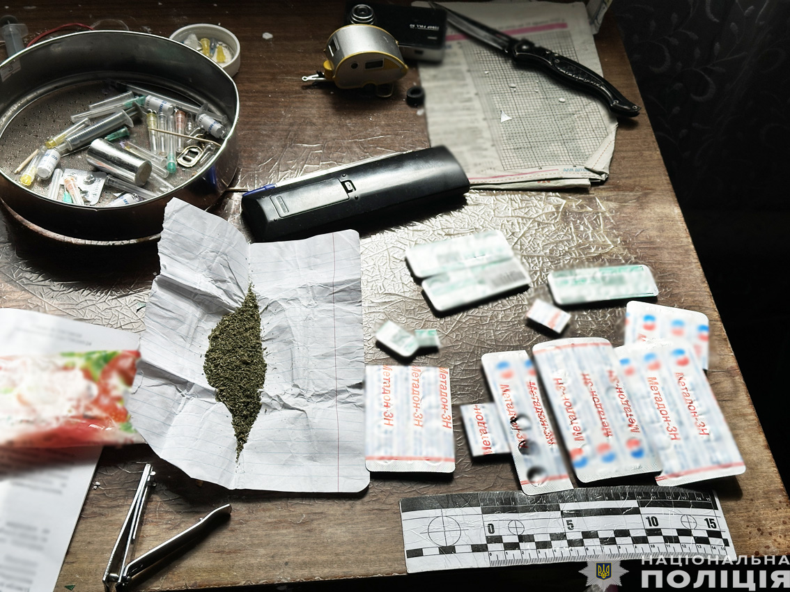 Оперативники кримінальної поліції за силової підтримки спецпідрозділу поліції КОРД провели затримання зловмисника. У його помешканні відбулися санкціонований обшук, в ході якого поліцейські вилучили подрібнену рослинну речовину з характерним запахом, схожу на канабіс, а також запас препаратів «метадон» та «димедрол» у пігулках. Крім цього, вилучено готівкову виручку від протиправної діяльності загальною сумою майже 10 тисяч гривень, та ряд інших речових доказів.