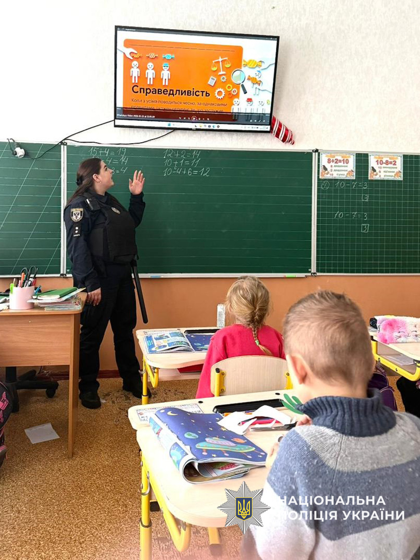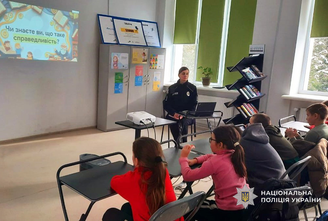 Поліцейські поспілкувалися з дітьми про важливість відповідального ставлення до власних вчинків та розповіли про значення доброчесності. А також разом з ліцеїстами переглянули антикорупційну казку «Світло над Чесляндією».
