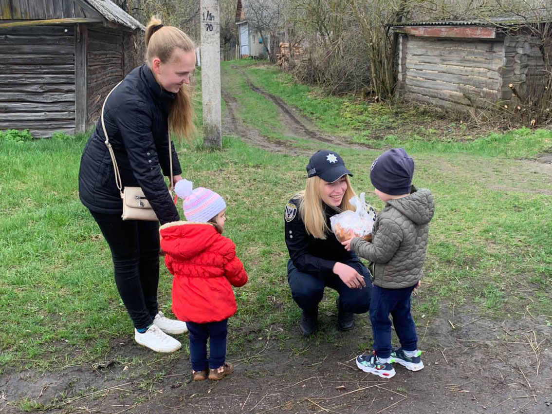 Поліція відвідала сім’ї з дітьми, які мешкають у громадах поблизу кордону з агресором. Поліцейські привітали родини з прийдешнім Світлим Воскресінням Христовим та пригостили малечу пасочками. Водночас поліція закликала сім’ї з дітьми евакуюватися вглиб Чернігівщини – подалі від прикордоння, яке ворог чи не щодня обстрілює.