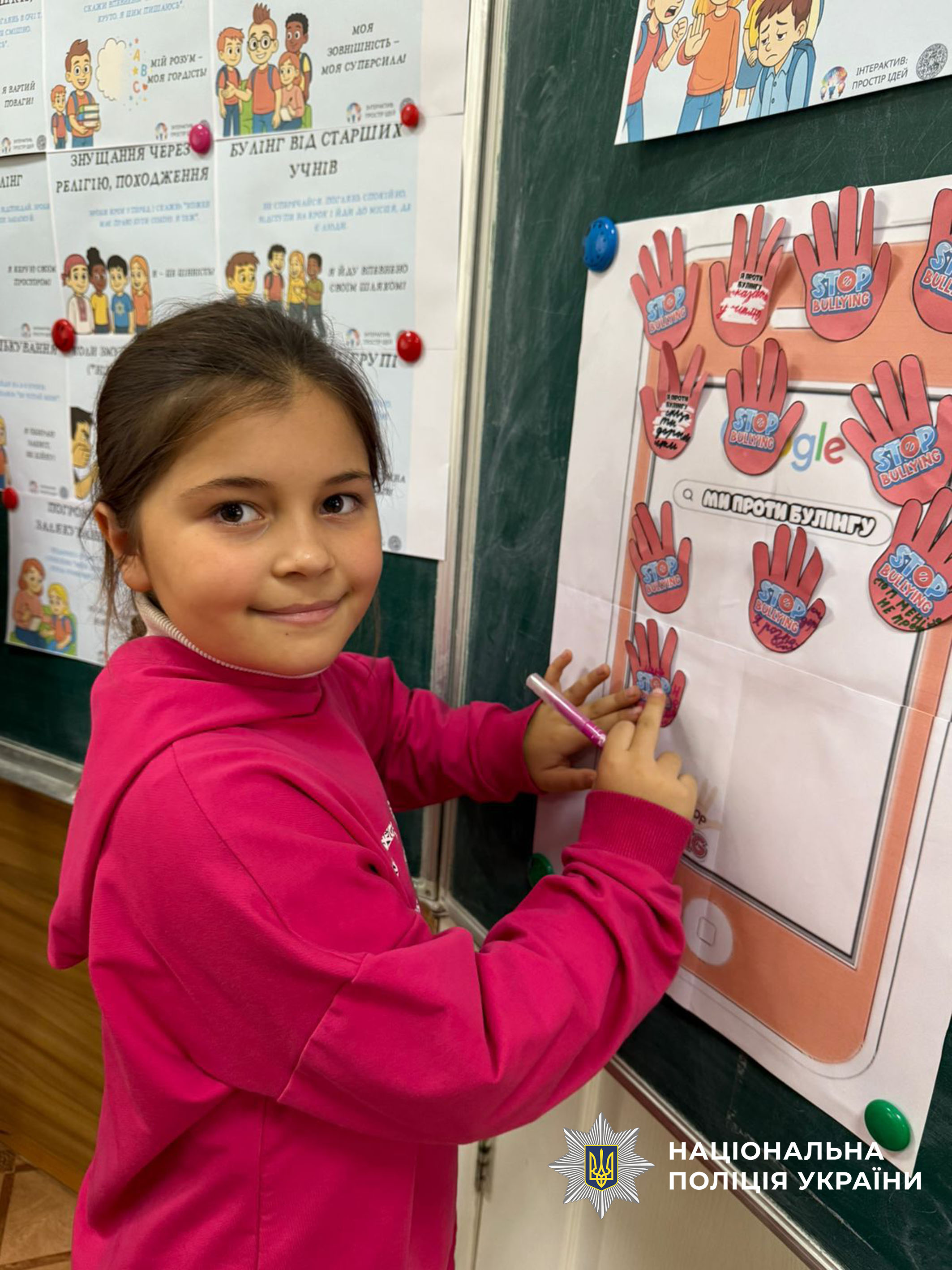 Під час зустрічі поліцейські розповідали дітям про домашнє насильство, булінг і кібербулінг та жорстоке поводження з дітьми. Також школярі отримали інформацію, як себе захистити та куди за необхідності звернутись по допомогу.