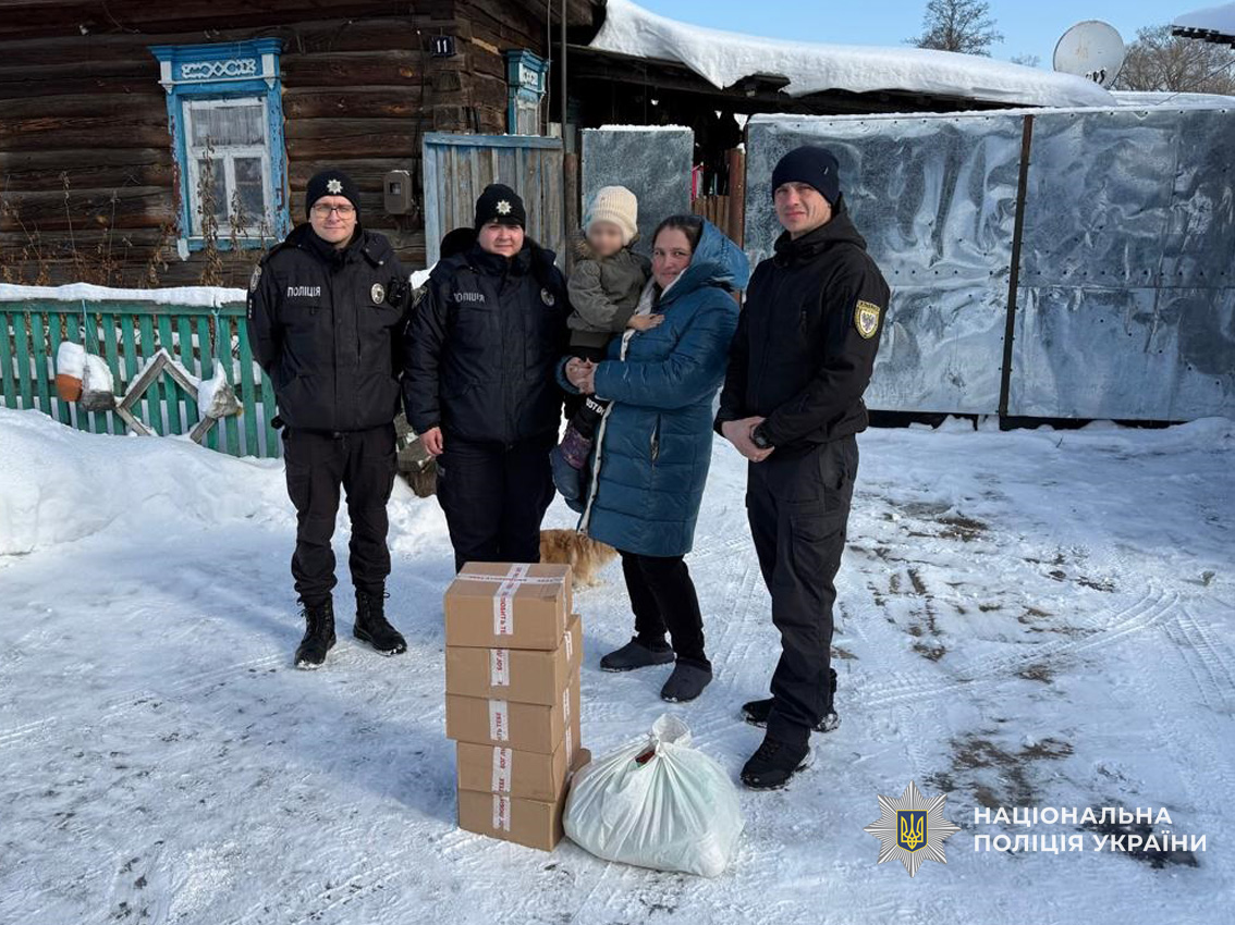 Поліцейські Новгород-Сіверського районного відділу поліції спільно з представниками громадської організації «Капеланський патруль» передали гуманітарну допомогу родинам з дітьми, які мешкають у населених пунктах прикордонної Семенівської громади Новгород-Сіверського району.
