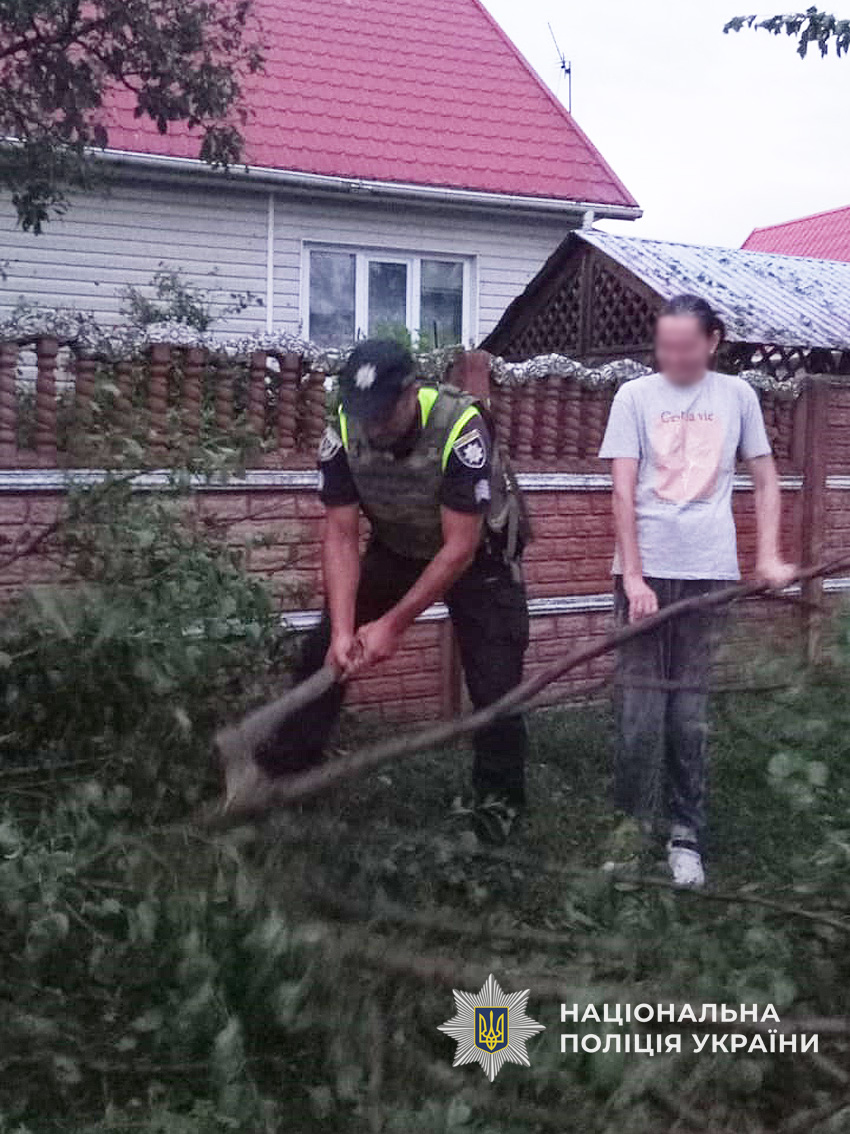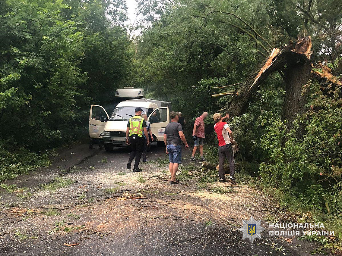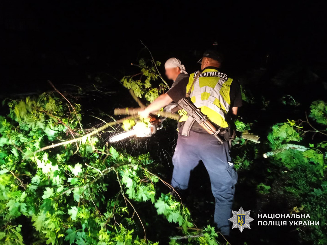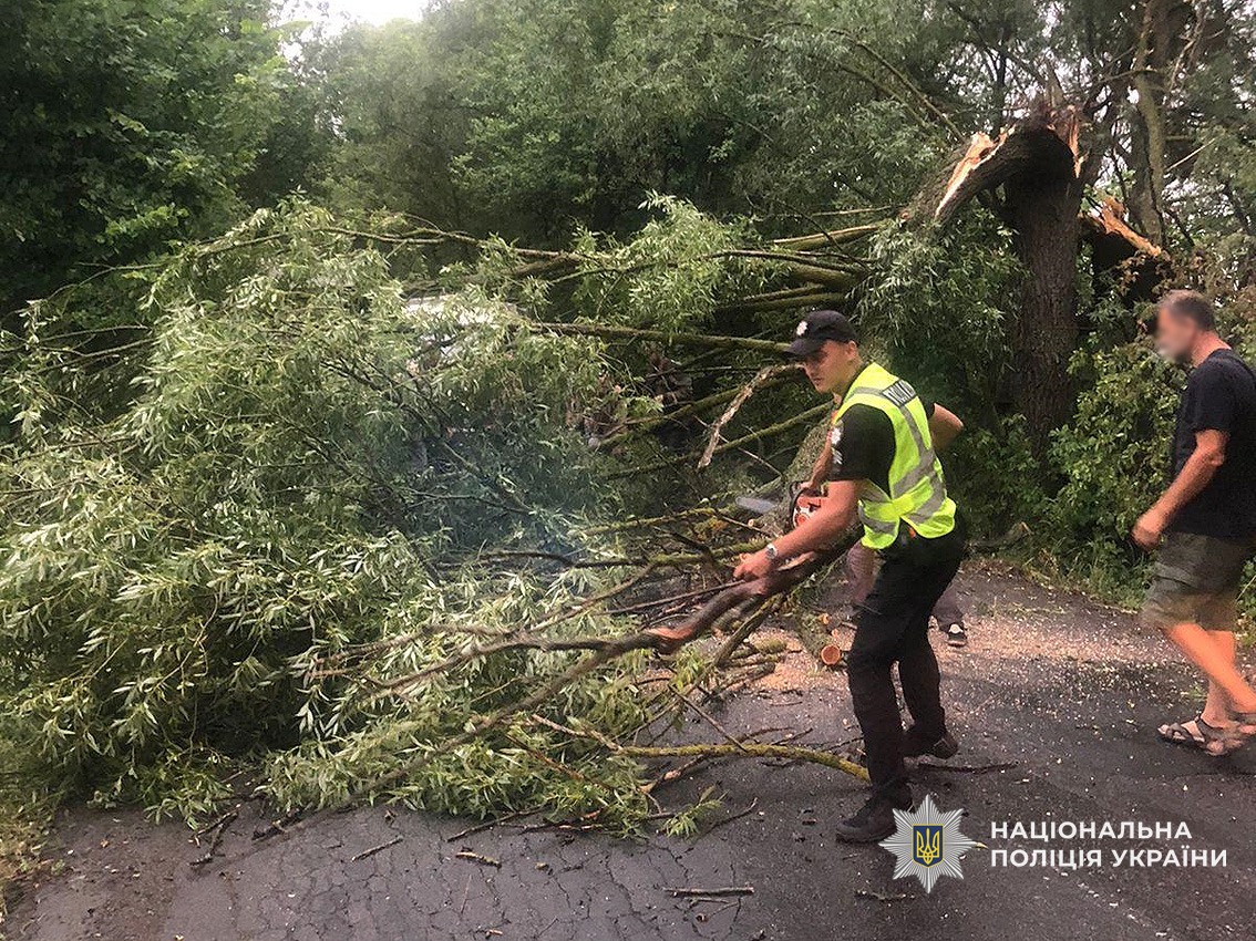 Внаслідок сильного поривчастого вітру з дощем та подекуди градом, автошляхи у багатьох громадах Чернігівщини виявилися перекриті поваленими деревами. Поліцейські самотужки або спільно з рятувальниками та працівниками комунальних служб негайно взялися до вжиття заходів для відновлення вільного проїзду.