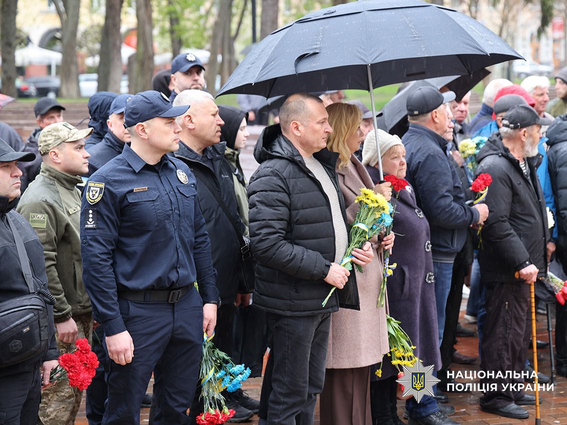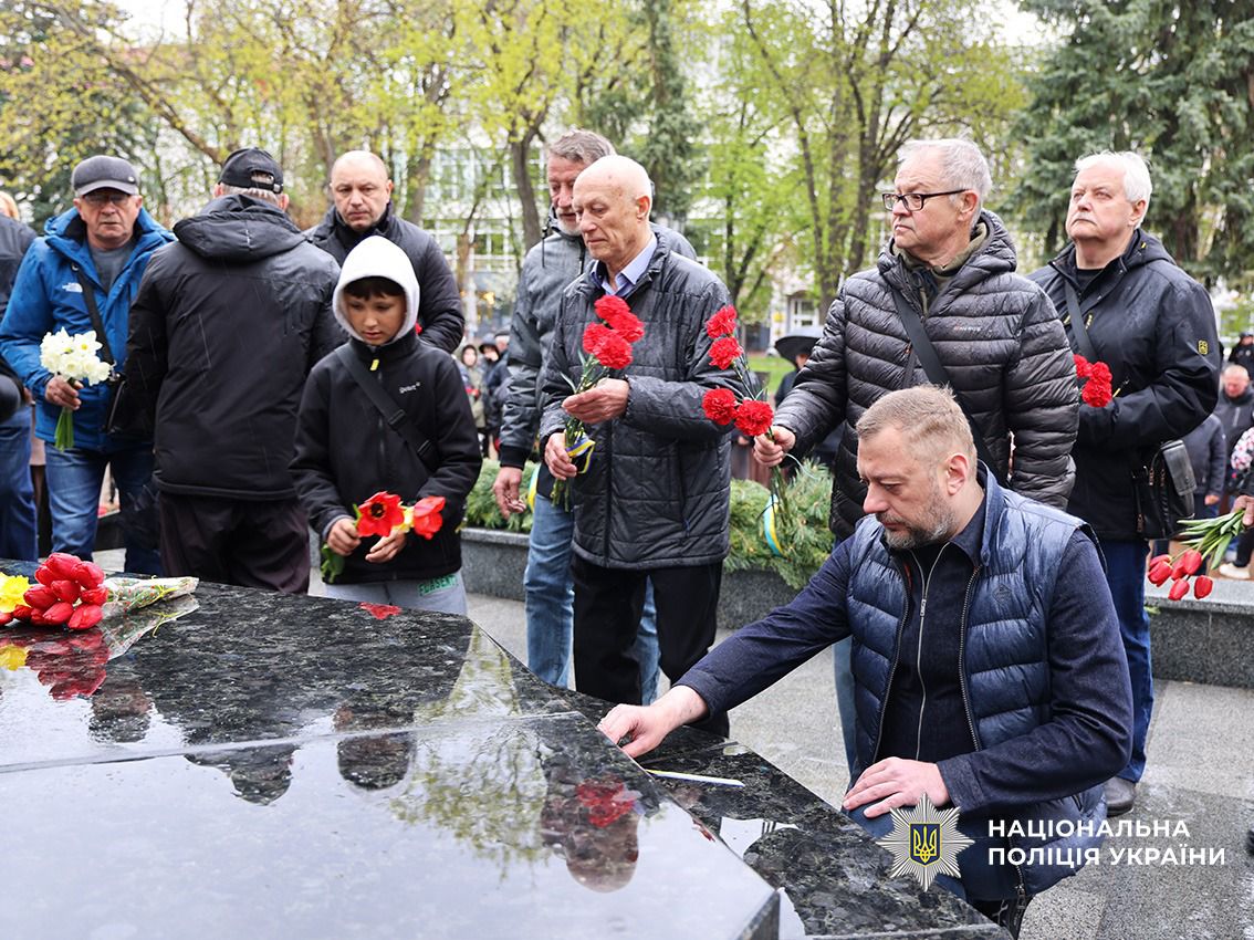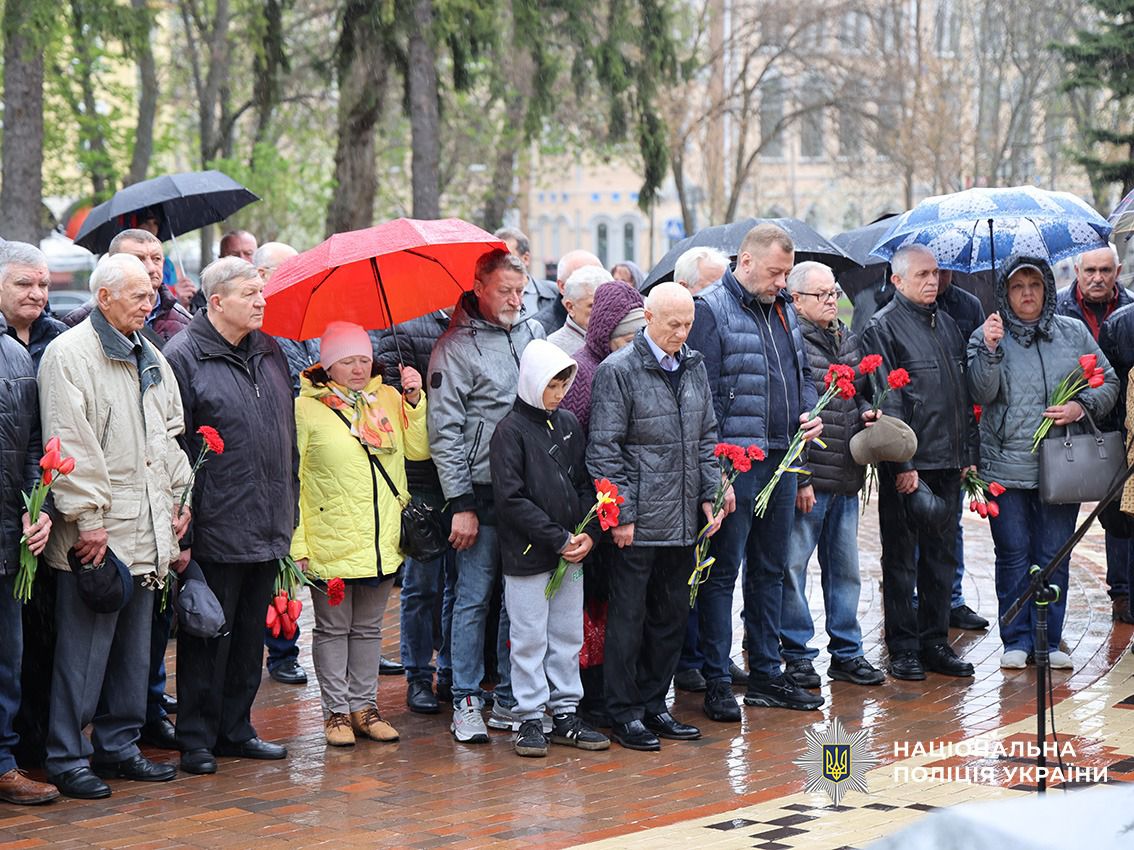 Сивочолі ліквідатори, поліцейські, керівництво області і міста – всі схилили голови та вшанували хвилиною мовчання світлу пам'ять загиблих.