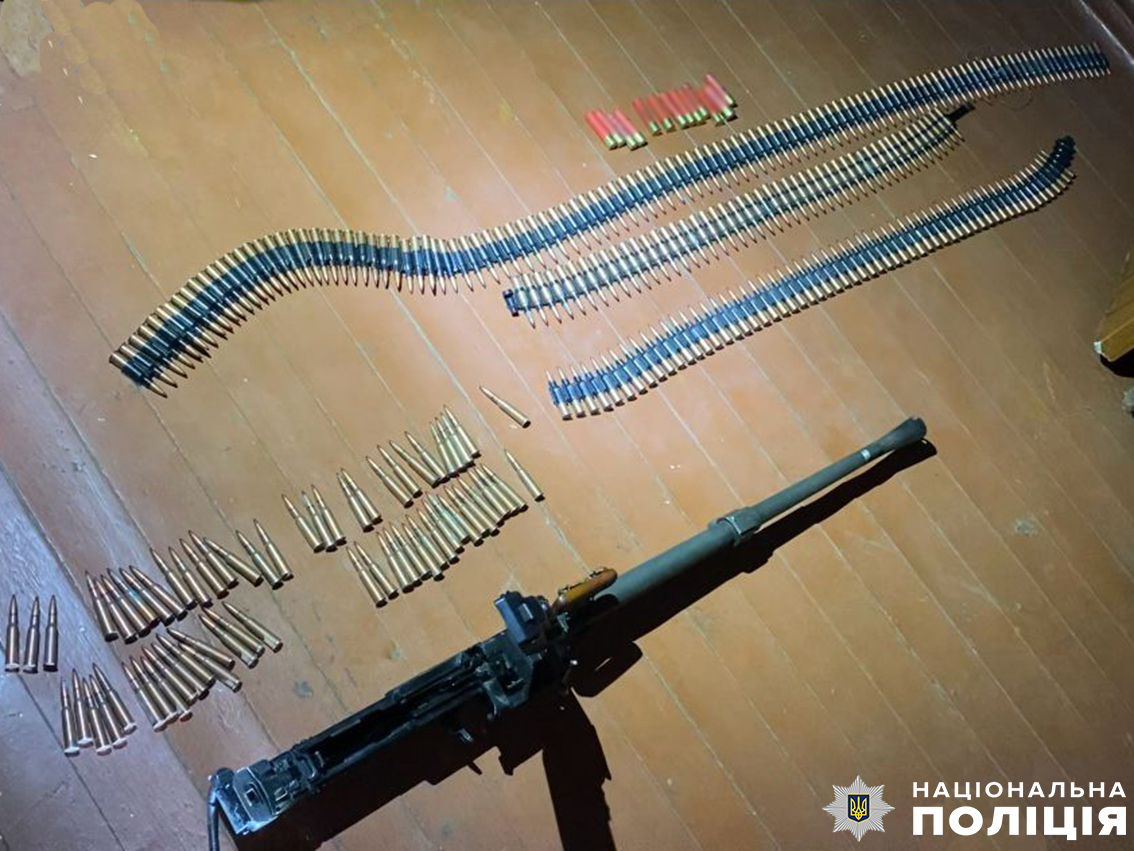 Під час невідкладних слідчих дій поліцейські виявили та вилучили кулемет ПКТ, карабін Мосіна з ознаками кустарної переробки, незареєстровану гладкоствольну рушницю, майже 300 набоїв до нарізної та 35 – до мисливської зброї.