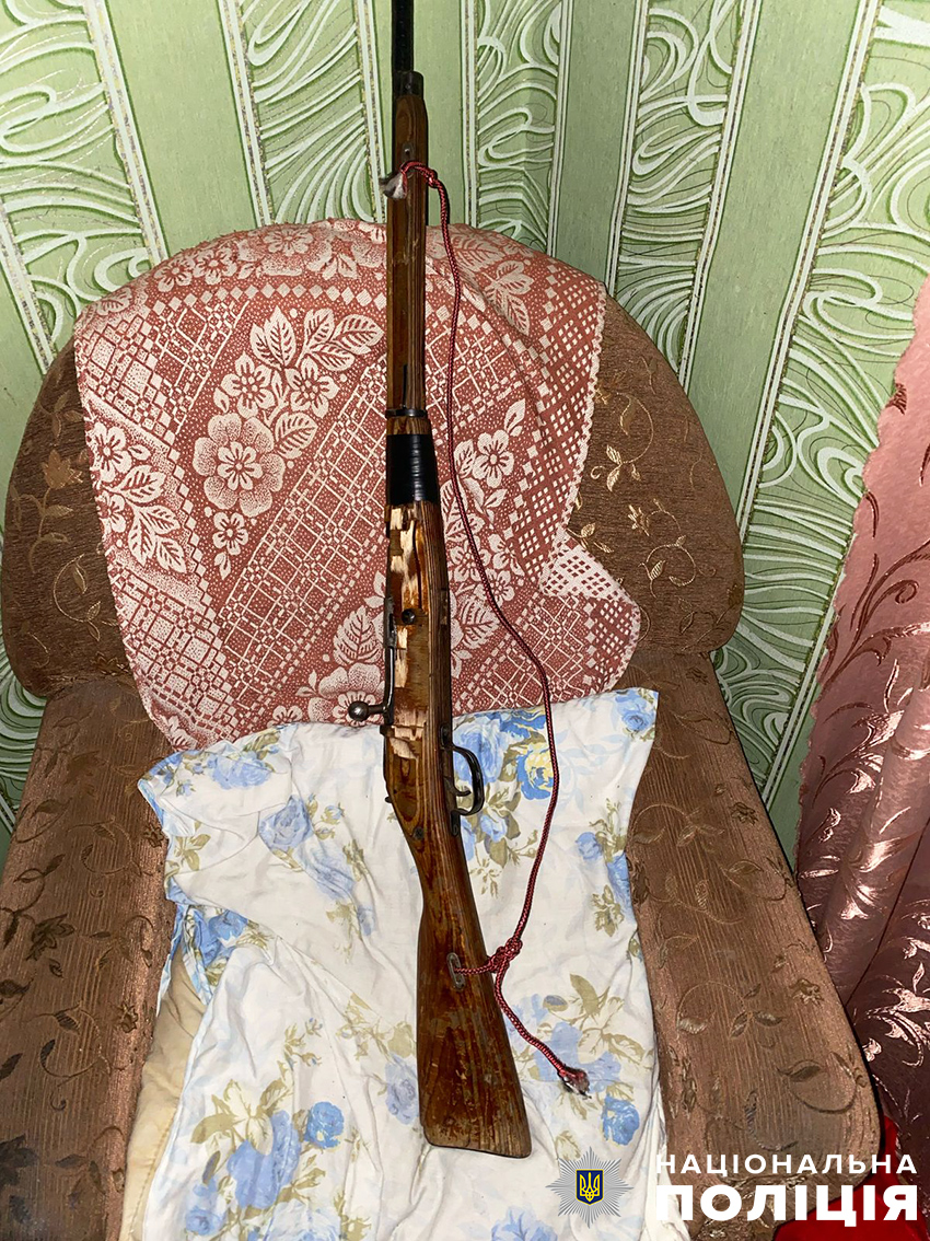 Повідомлення про вчинення домашнього насильства надійшло до поліції 10 квітня ввечері. Під час опрацювання виклику поліцейські з’ясували, що кривдник незаконно зберігає вдома декілька одиниць зброї.