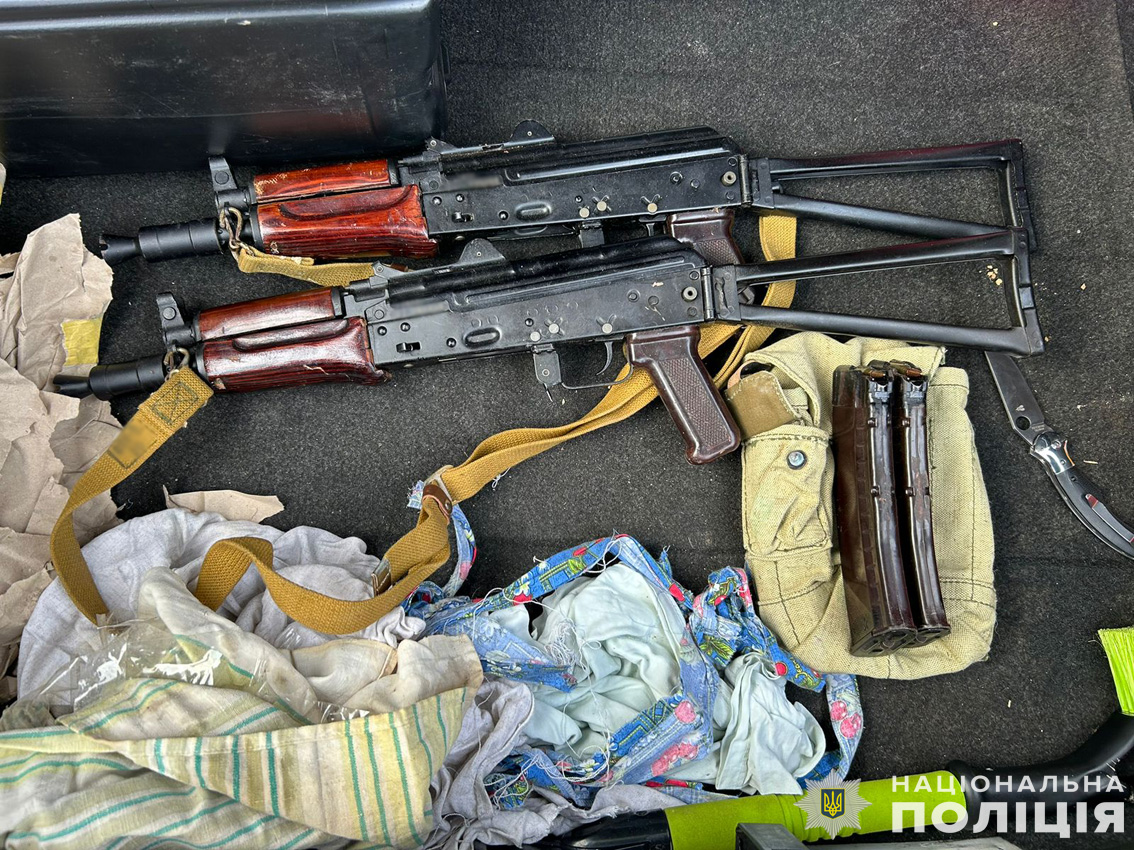 Поліцейські встановили, що зловмисник в період перебування на волі мав у своєму розпорядженні певну кількість вогнепальної зброї, набоїв та вибухівки – зокрема, 3 автомати Калашникова калібру 5,45 мм, понад 800 набоїв до них, дві ручні гранати, понад 2 кг тротилу в шашках по 200 та 400 грамів, а також більше ніж пів кілограма пластичної вибухівки на основі гексогену. Ці предмети фігурант розподілив по «схронах» у приміській дачній місцевості під Черніговом, замаскував схованки та зафіксував їхні точні координати.