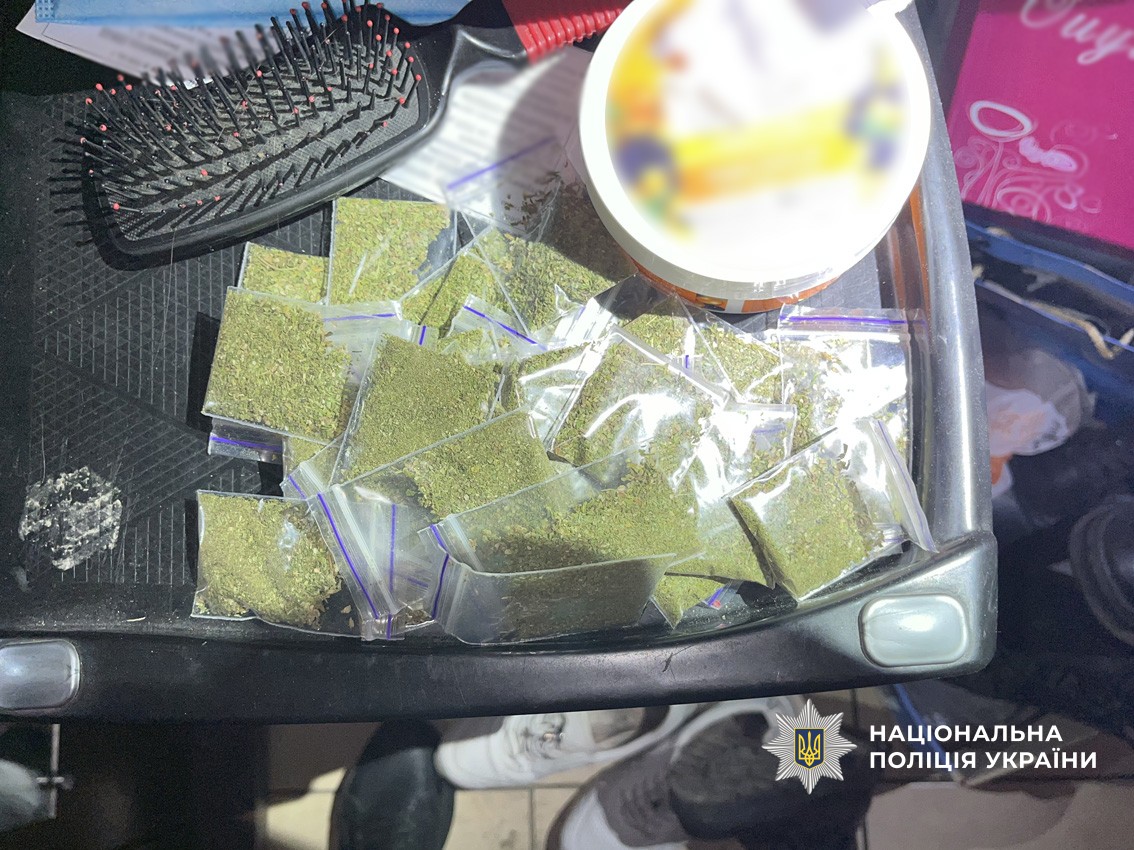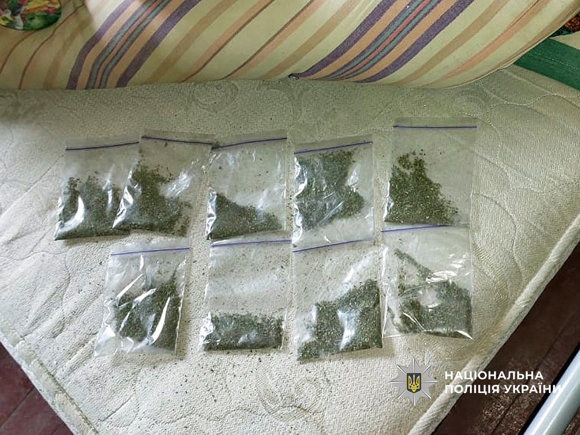 В ході обшуків поліцейські виявили та вилучили сумарно понад пів сотні зіп-пакетів з розфасованими наркотиками рослинного походження та два пакети такої ж речовини, підготовленої до фасування. Також вилучено значний запас пакувальних засобів, електронні ваги та посуд з нашаруваннями рослинної речовини, пристрої для споживання наркотиків, готівкові кошти у вітчизняній та іноземній валютах, банківські картки, блокнот з чорновими записами, інші речові докази злочинної діяльності. Вилучене направлено на проведення експертних досліджень.