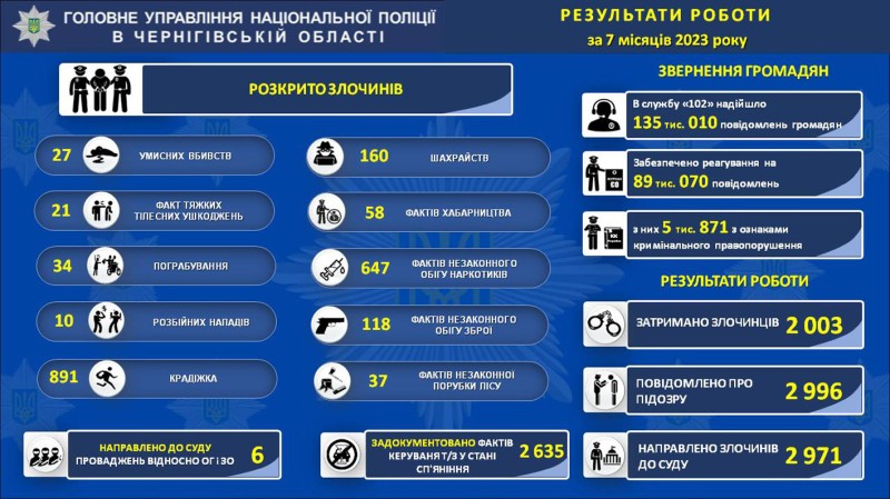 Поліція Чернігівщини прозвітувала про результати роботи за 7 місяців