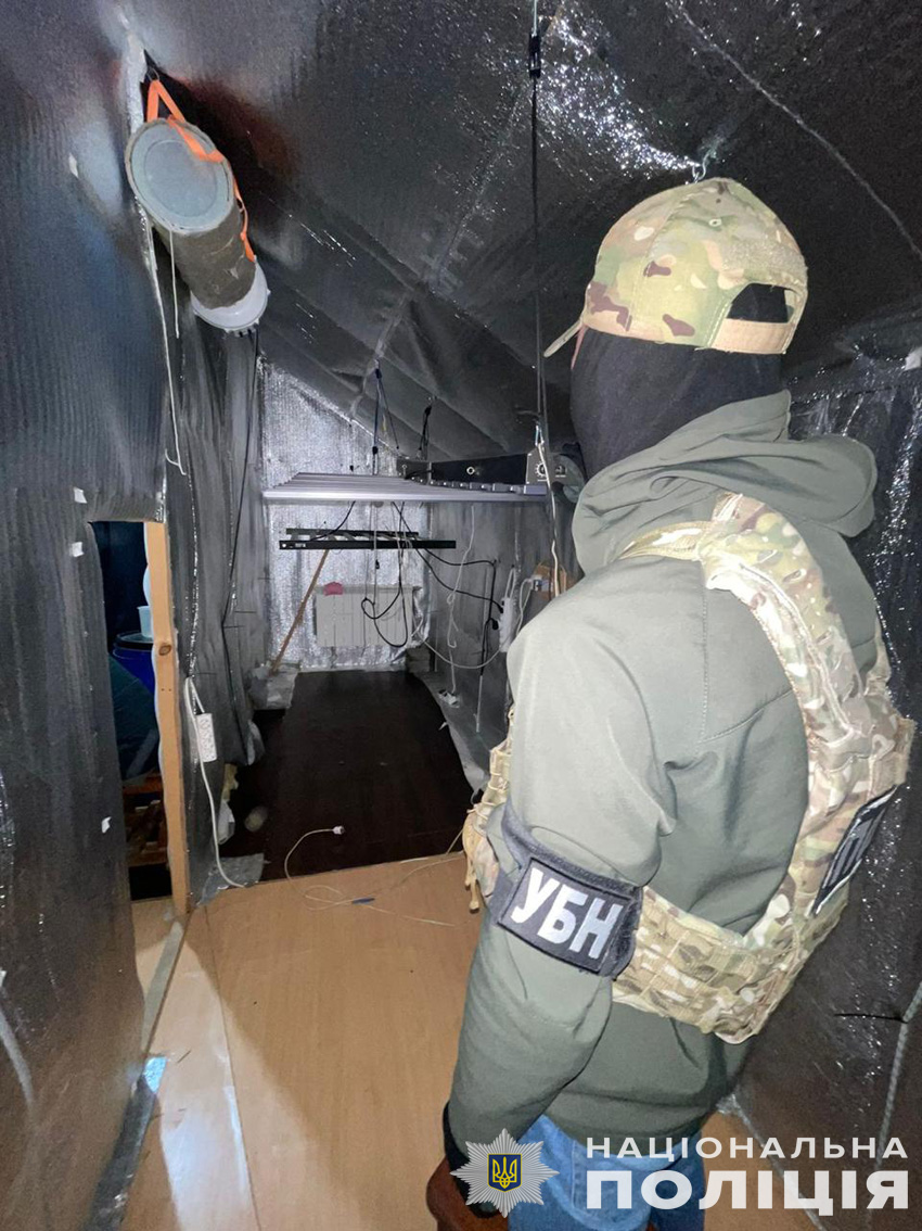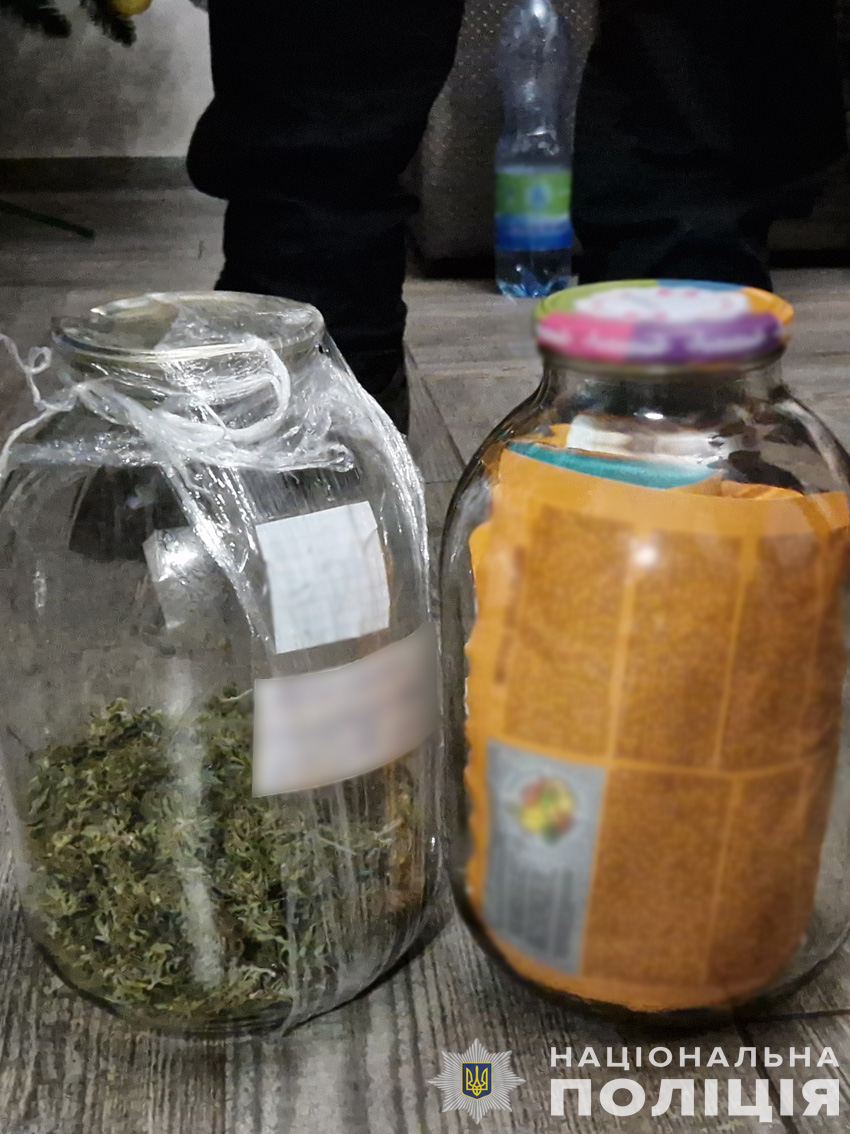В ході обшуків правоохоронці виявили та вилучили понад 1 кілограм речовини рослинного походження, що схожа на канабіс, розфасовану на дрібні порції порошкоподібну речовину, що схожа на амфетамін, а також виявили обладнане приміщення для вирощування та фасування наркотиків – лампи, вентилятори, акумулятори, пластикові контейнери для фасування наркотичної речовини, ваги з нашаруванням невідомих речовин, пластикові показники (орієнтири) для розсади і вирощування рослин роду конопель, зіп-пакети для фасування, насіння конопель, саморобний пристрій для куріння, банківські картки, блокноти з чорновими записами, 11 мобільних телефонів підозрюваних.
