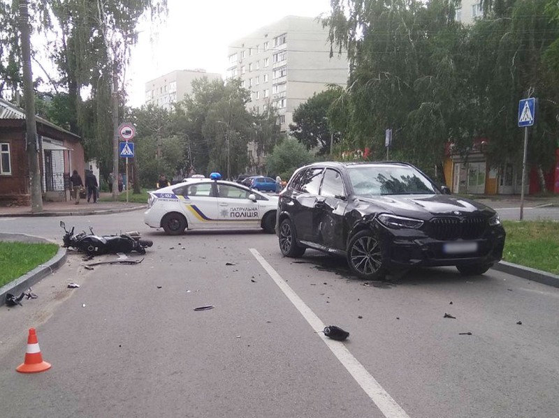 12 липня близько 9.10 водій автомобіля «BMW», рухаючись в Чернігові по вул. П’ятницькій переїжджаючи перехрестя з вул. Софії Русової, проявила неуважність, не виконала вимоги дорожнього знаку "STOP", не надала перевагу в русі мотоциклу, який рухався по головній дорозі, допустила зіткнення.