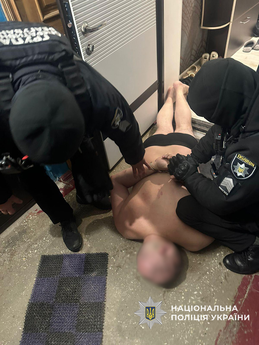Поліція за силової підтримки групи оперативного реагування затримала зловмисника в порядку ст. 208 Кримінального процесуального кодексу України. У його помешканні провели санкціонований обшук, під час якого вилучили знаряддя злочину.