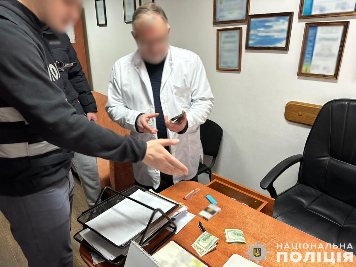 Поліцейські знешкодили корупційну схему ухилення від військової служби, яку організував завідувач відділення одного з медичних закладів області. Поліція затримала зловмисника під час отримання хабаря та в ході обшуків вилучила у лікаря чверть мільйона гривень.