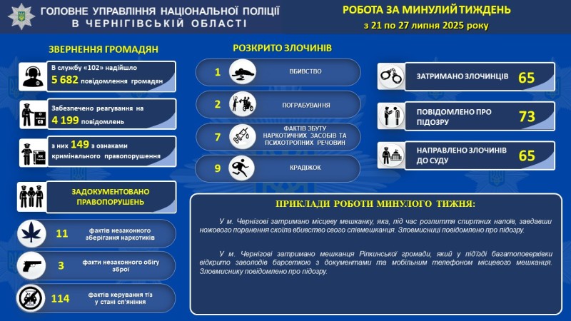 Поліція Чернігівської області представила щотижневий звіт про свою роботу