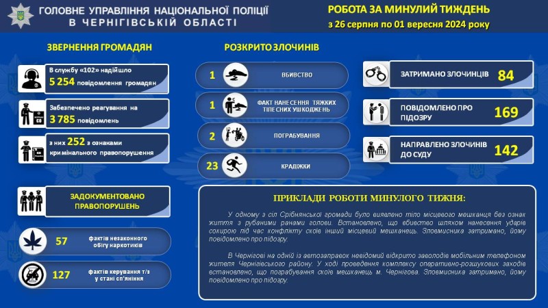 Поліція Чернігівської області представила щотижневий звіт про свою роботу