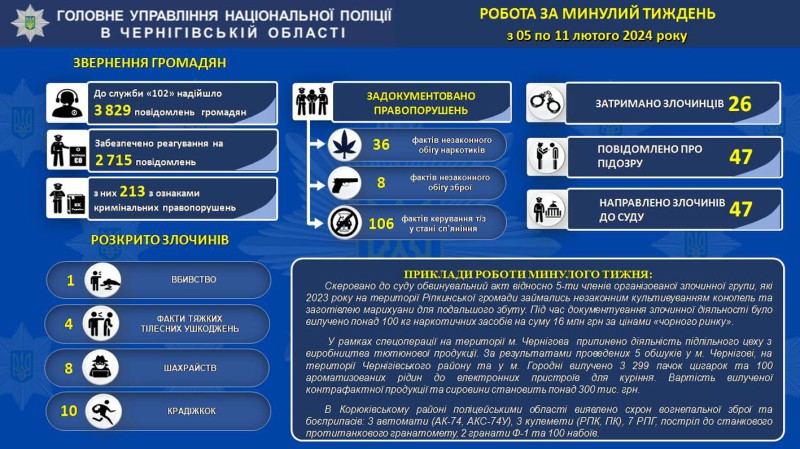 Поліція Чернігівської області представила щотижневий звіт про свою роботу