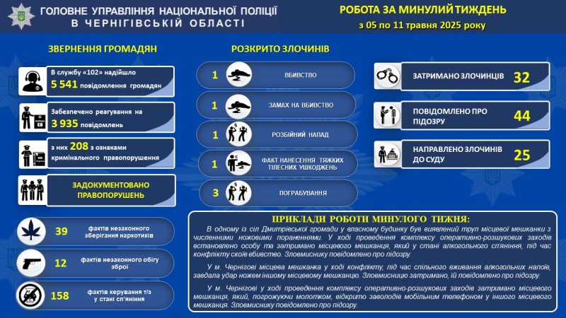 Поліція Чернігівської області представила щотижневий звіт про свою роботу
