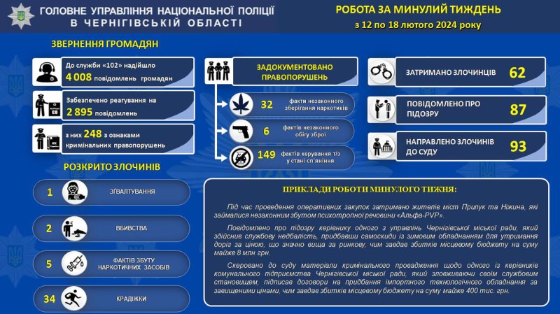 Поліція Чернігівської області представила щотижневий звіт про свою роботу