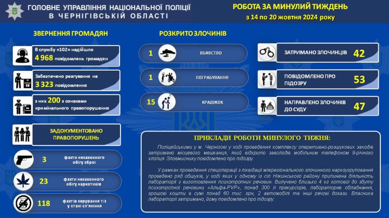 Поліція Чернігівської області представила щотижневий звіт про свою роботу