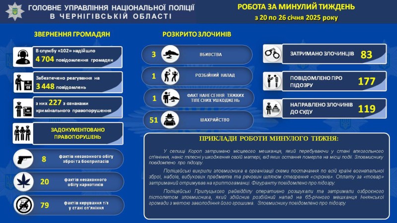 Поліція Чернігівської області представила щотижневий звіт про свою роботу