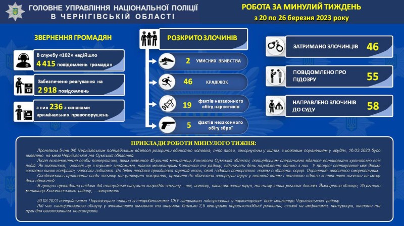 Поліція Чернігівської області представила щотижневий звіт про свою роботу