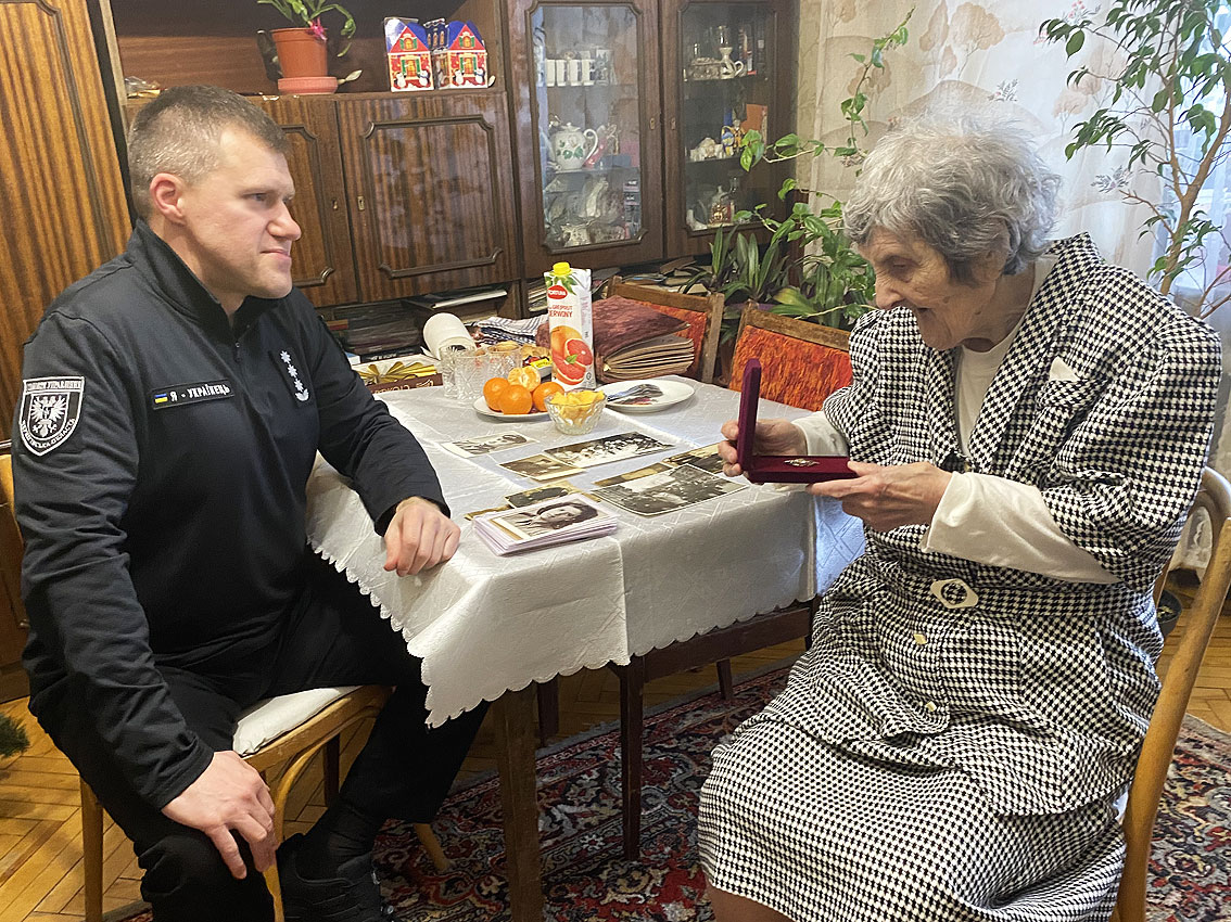 Сьогодні начальник Головного управління Нацполіції у Чернігівській області Володимир Нідзельський разом з колегами привітав шановану ювілярку з Днем народження та вручив їй «Почесну відзнаку» Асоціації ветеранів МВС України.