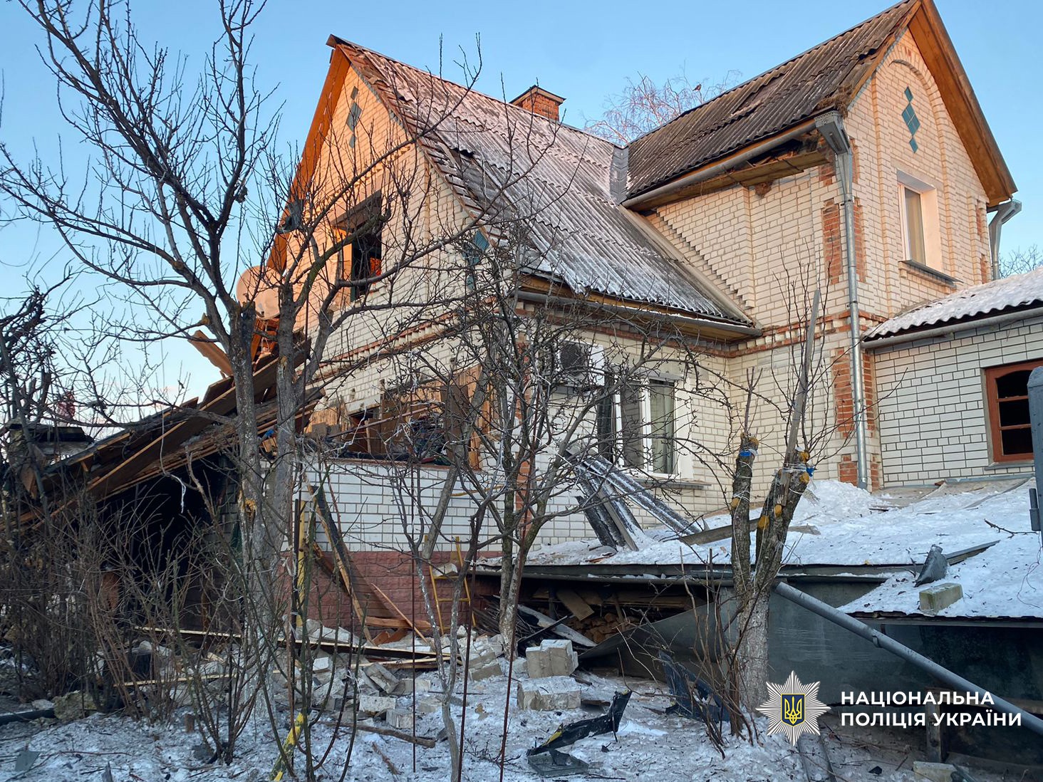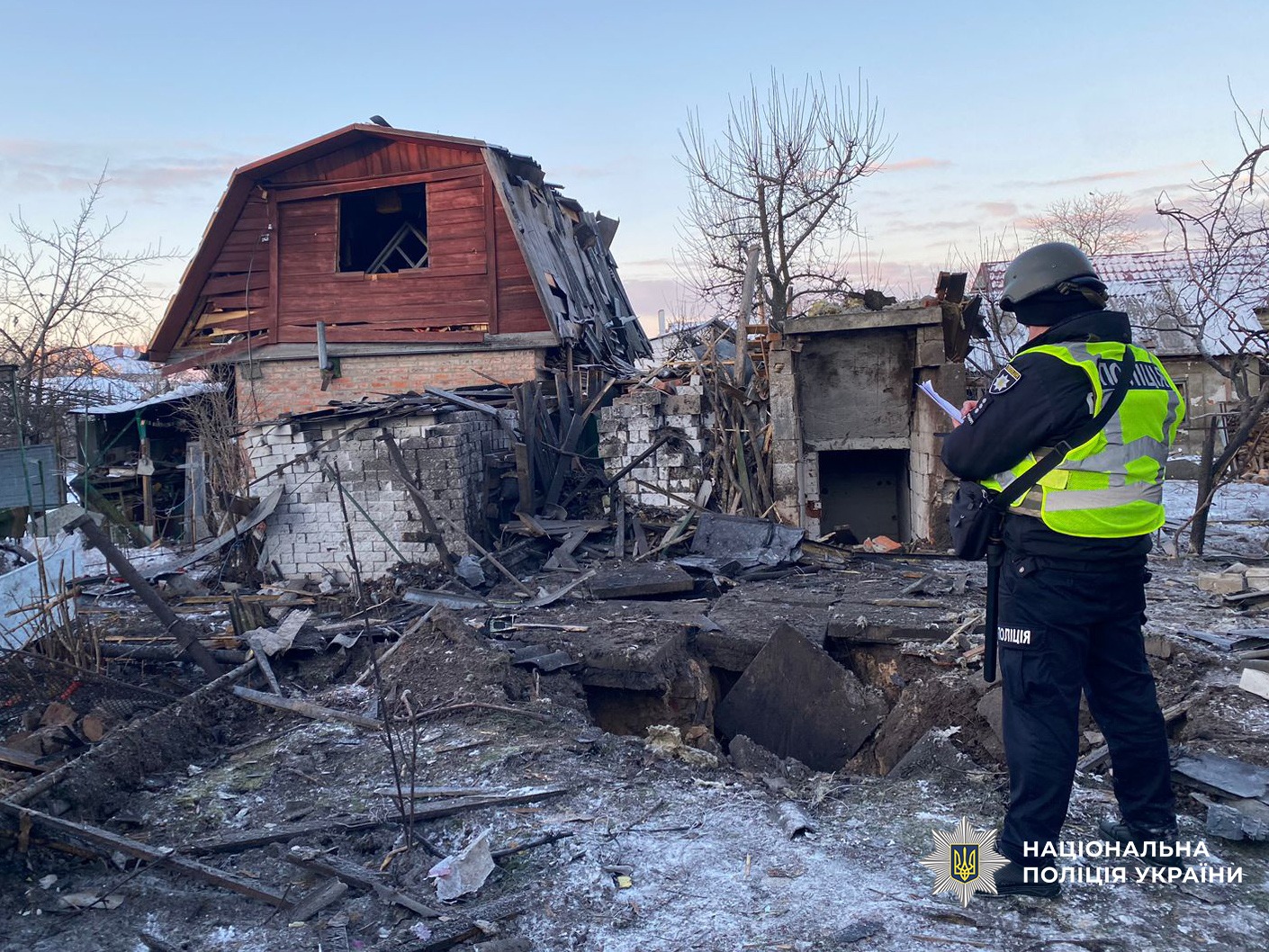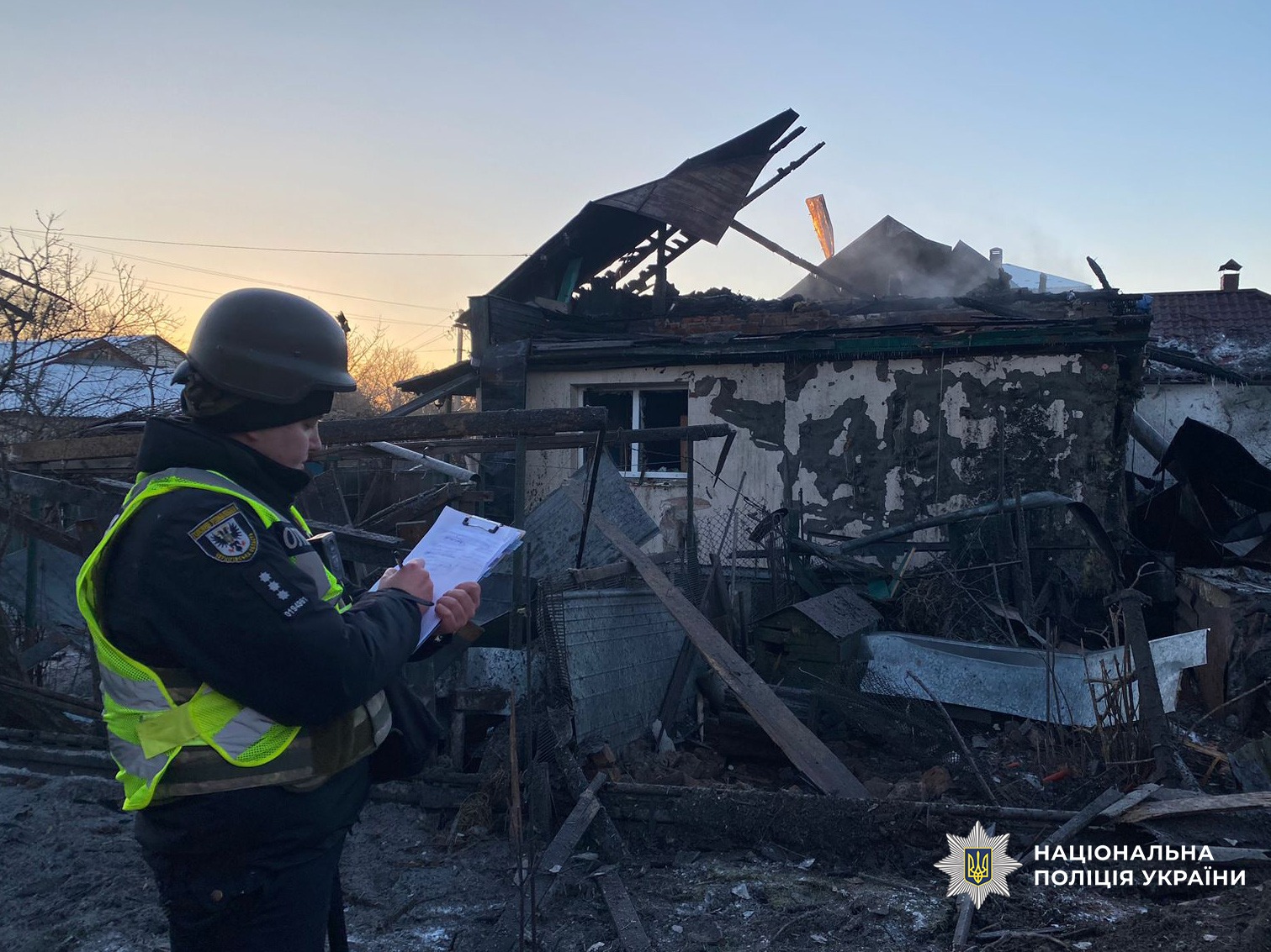Поліція фіксує наслідки влучань та збирає докази чергових воєнних злочинів окупантів.