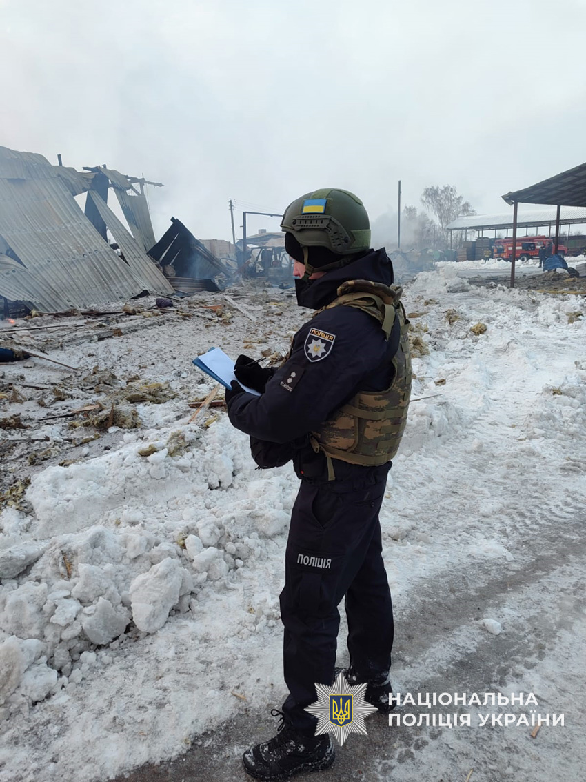 Поліція документує наслідки російських ударів. Відомості про подію внесені до Єдиного реєстру досудових розслідувань за статтею 438 Кримінального кодексу України (воєнні злочини).