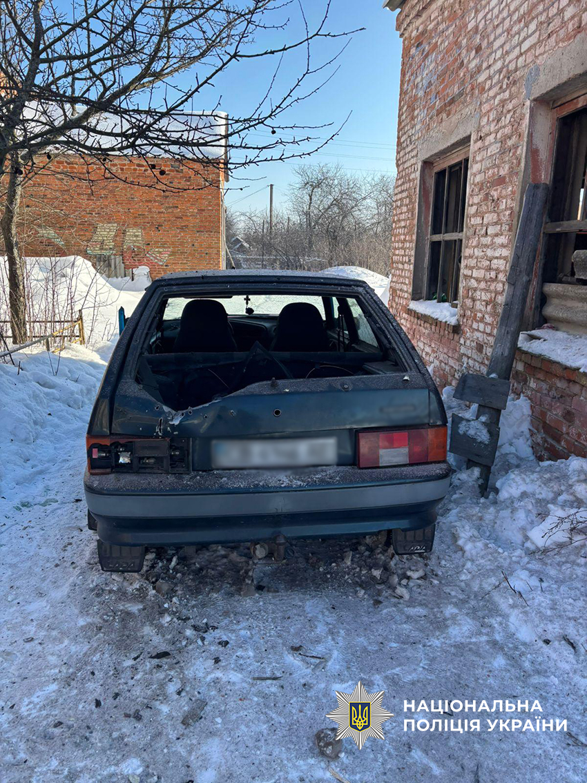 Внаслідок атаки пошкоджено приватні будинки та легковий автомобіль місцевих мешканців. Поліція документує наслідки ворожих ударів.