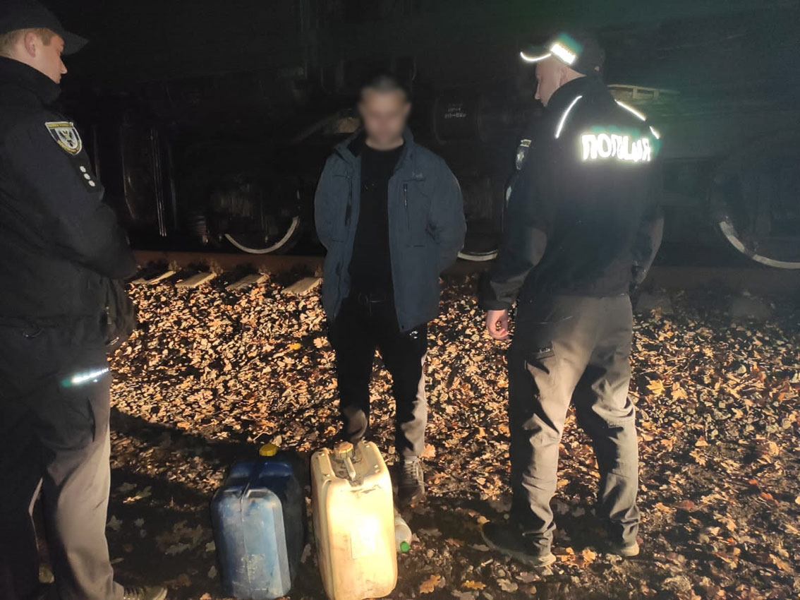 Поліція спільно з воєнізованою охороною Укрзалізниці спіймали «на гарячому» підозрюваних у крадіжці дизпалива з потяга