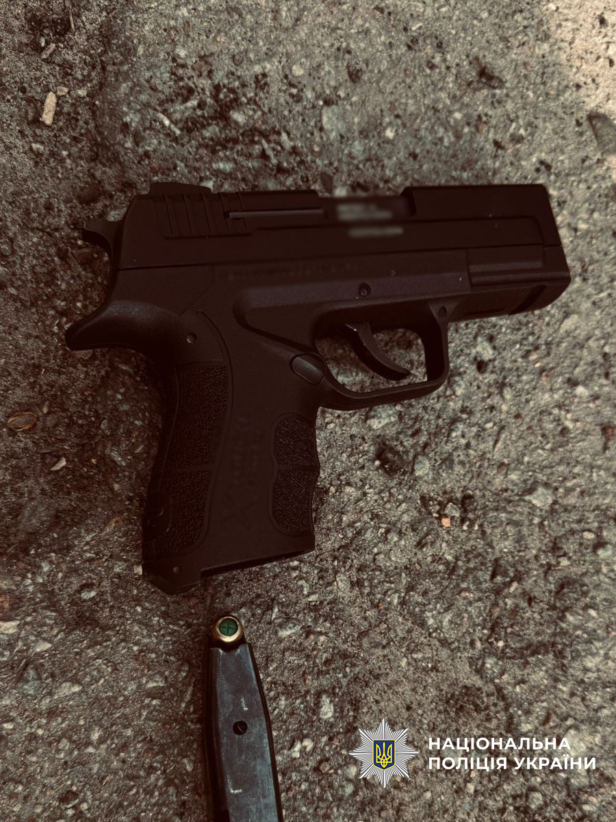 Поліцейські оперативно затримали 23-річного чоловіка в порядку ст. 298-2 Кримінального процесуального кодексу України. Зброю вилучено, мотиви скоєного встановлюються.