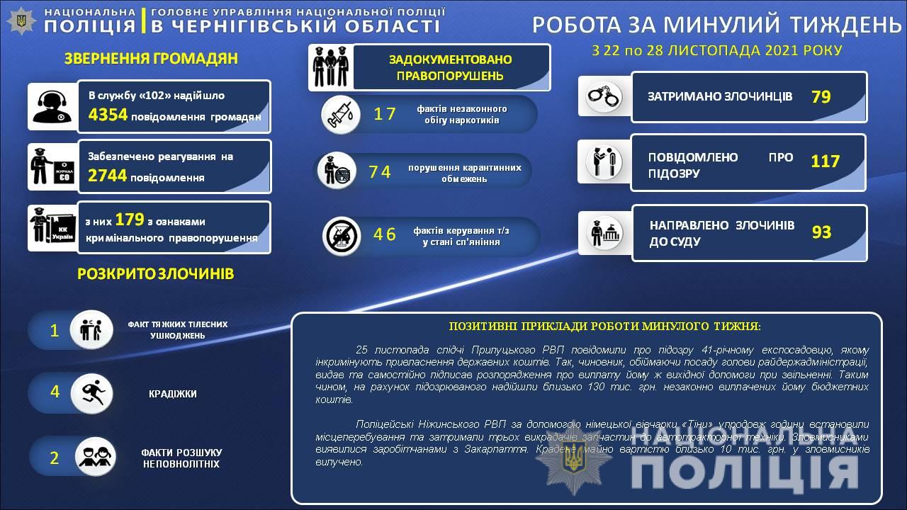 Поліція Чернігівської області представила щотижневий звіт про свою роботу