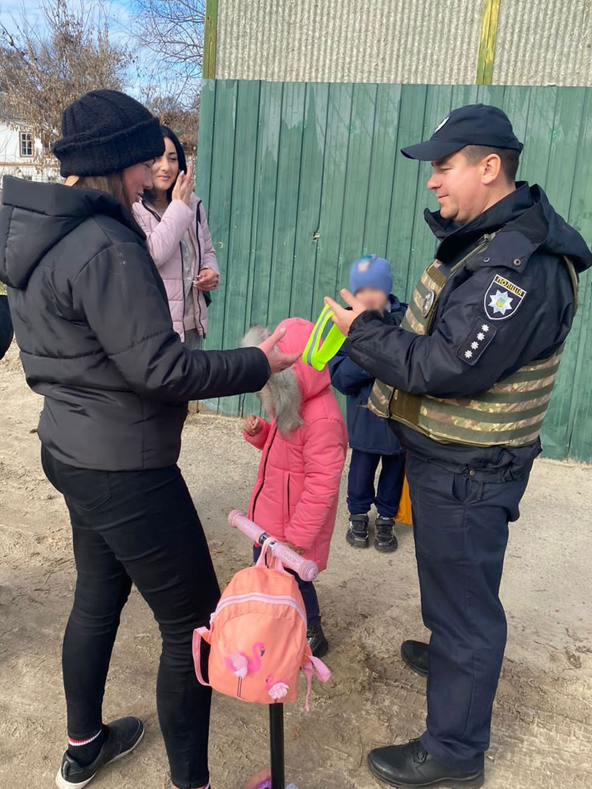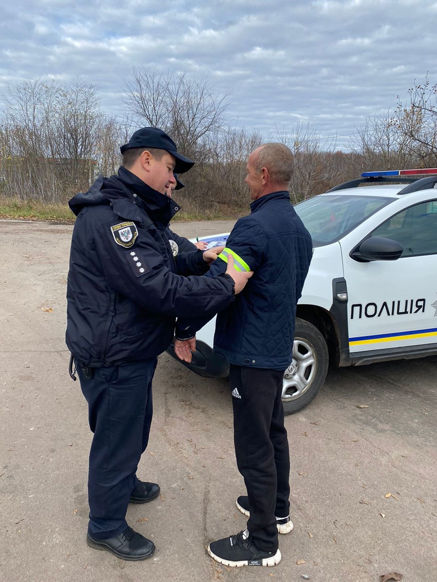 Поліція проводить роз’яснювальні бесіди з пішоходами про необхідність безпечної поведінки на вулиці та дорозі, особливо у темну пору доби. А щоб громадяни були більш помітними у темряві, поліцейські прикріпили світловідбивні елементи до їхнього одягу.