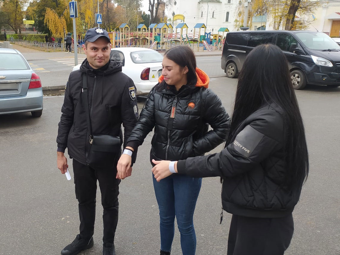 Сьогодні ніжинські поліцейські роздали флікери як дорослим, так і дітям, щоб вони були помітні на дорозі в темний час доби.