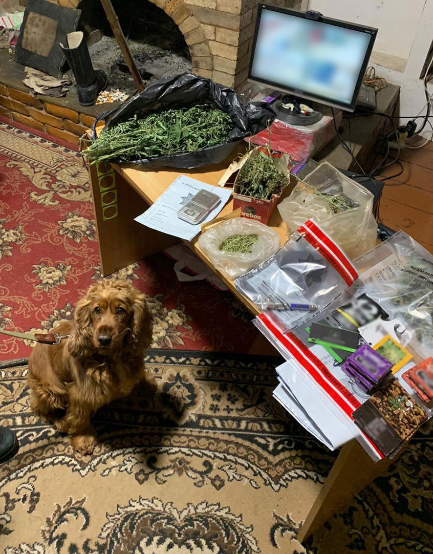 У ході обшуків правоохоронці із залученням службового собаки виявили у будинках обох фігурантів пакети з сухою подрібненою речовиною рослинного походження, сушені рослини конопель, пристрої для її куріння та інші речові докази.