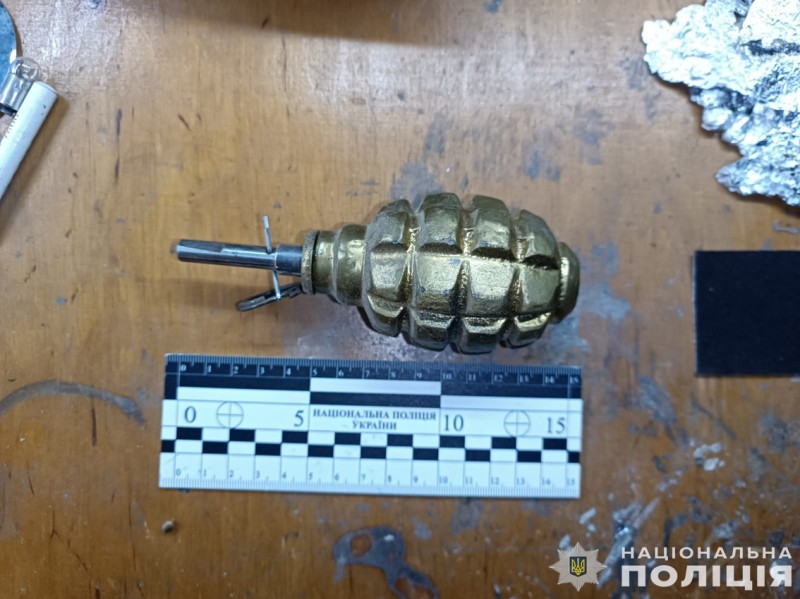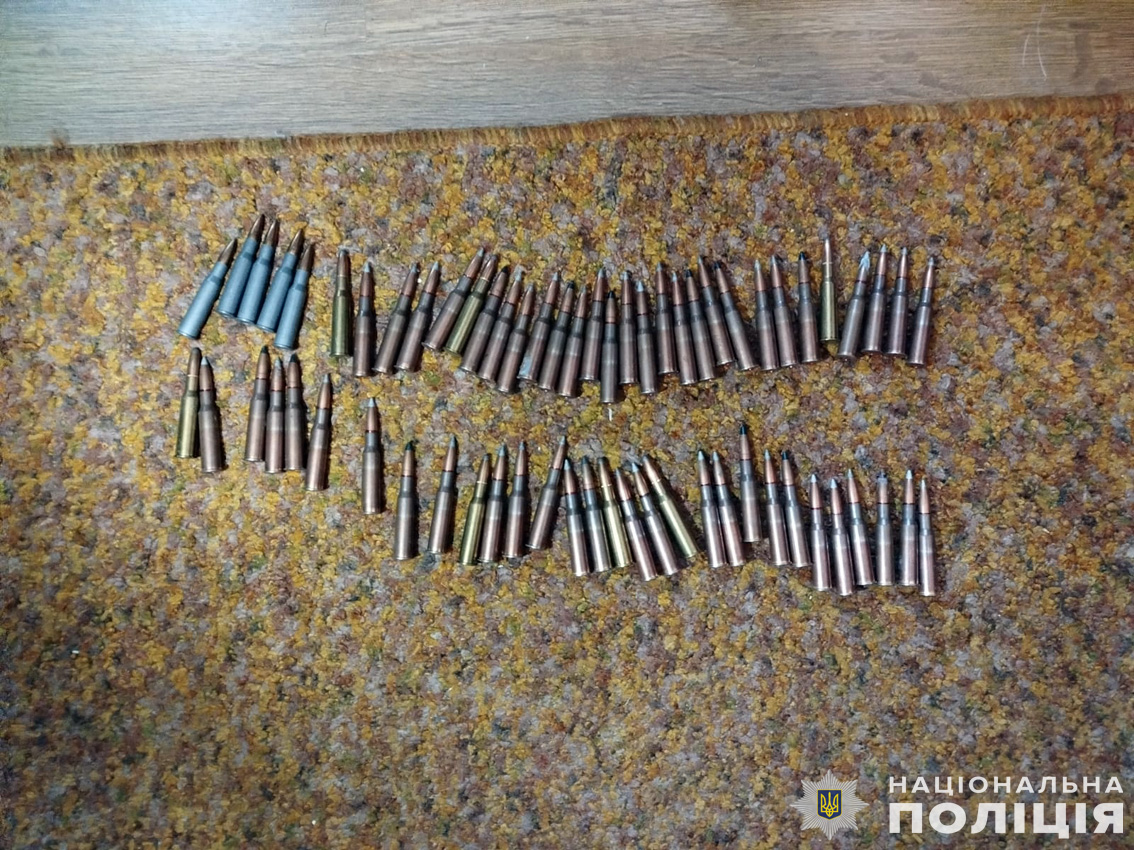 У результаті слідчої дії поліцейські виявили у помешканні чоловіка незареєстровану рушницю та пістолет з ознаками переробки, більше сотні набоїв різних калібрів (5,45 мм, 7,62 мм та 9 мм), три гранати з запалами, боєприпас до гранатомета і два великокаліберні набої. Окрім того, у зловмисника вилучили подрібнену зелену речовину, схожу на канабіс, та деякі інші речові докази.