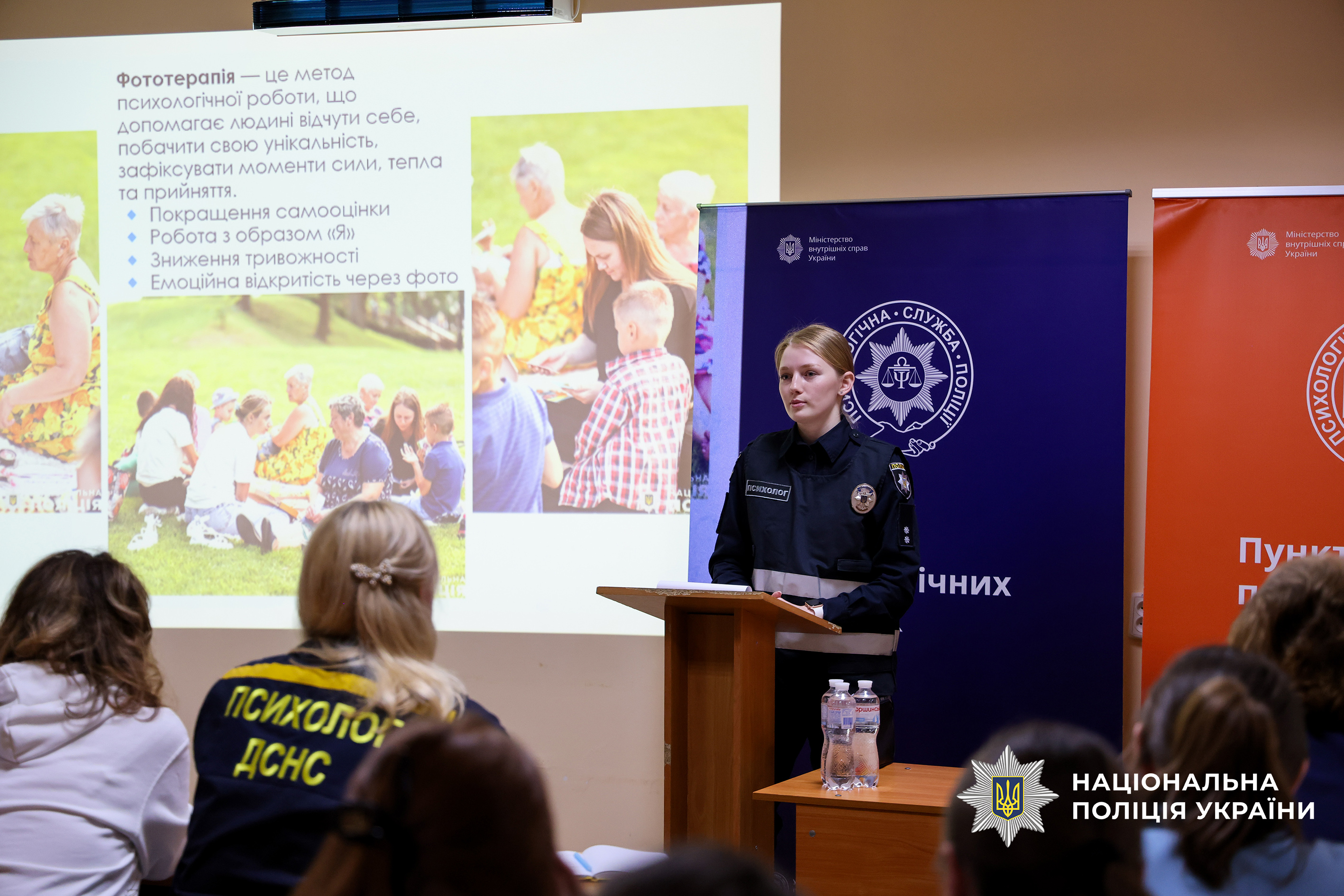 Вони поділилися досвідом застосування сучасних методик, зокрема: каністерапії, арттерапії, іпотерапії та фототерапії – технік, які допомагають постраждалим впоратися з наслідками травматичного досвіду.