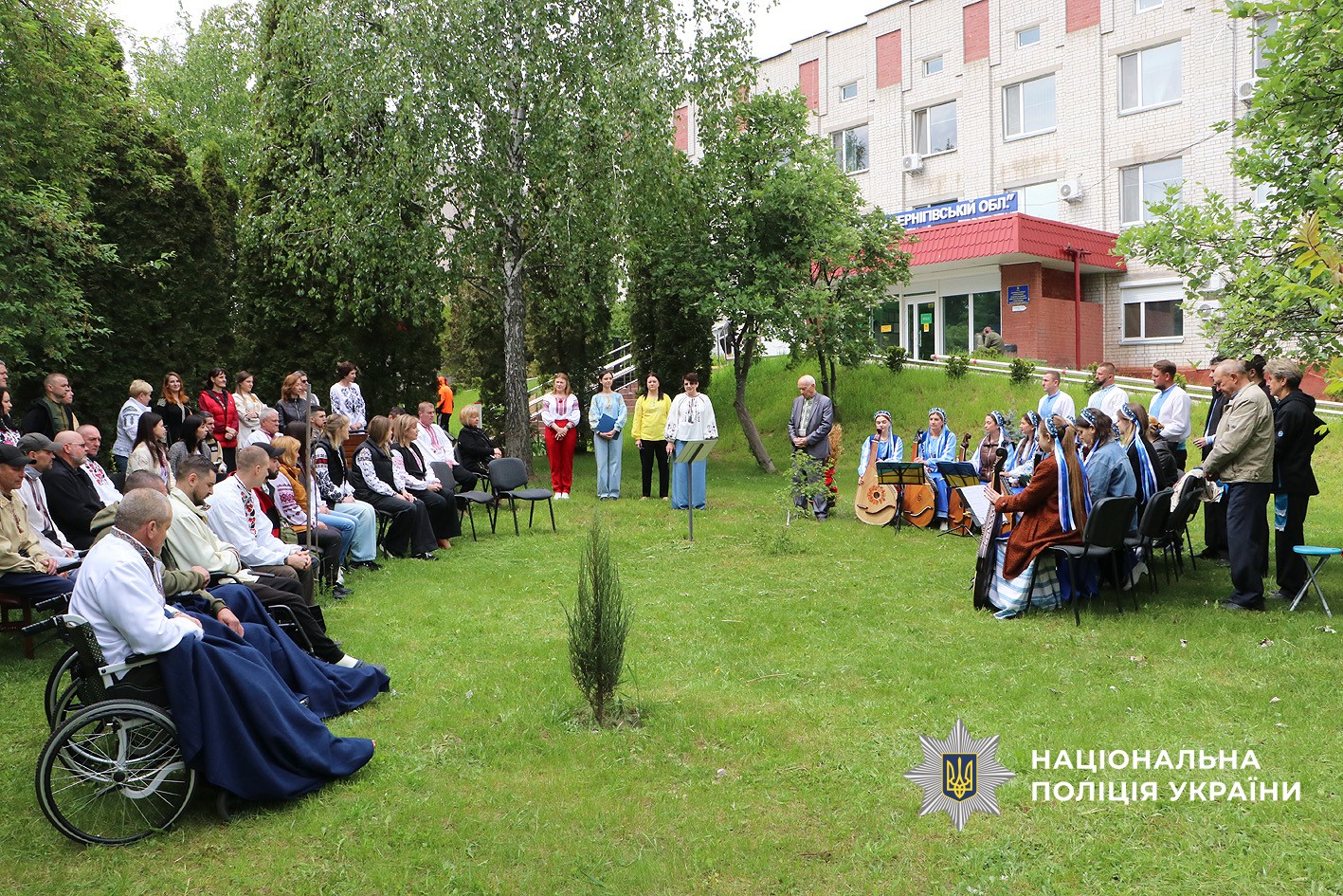 – Ця акція для нас дуже важлива, адже вишиванка – це не просто візерунки на тканині сорочки або сукні. Це справжній код української нації – душа нашого народу, історія предків, мрія про вільне майбутнє, за здобуття якого кожен захисник України не побоявся вийти на смертний бій з одвічним ворогом, – сказала начальник Державної установи «Територіальне медичне об’єднання МВС України по Чернігівській області» Алла Галеєва. – Разом з бійцями, які нині проходять лікування та реабілітацію у нашому медзакладі, ми сьогодні вдягли вишиванки та зібралися ось тут, біля іншого символу української нації – куща калини, висадженого торік спільно персоналом закладу і пораненими захисниками. Хочу сьогодні побажати нам усім: нехай кожна ниточка вишитих візерунків нагадує про силу, стійкість і незламність, і водночас – ніжність і мудрість українського народу!