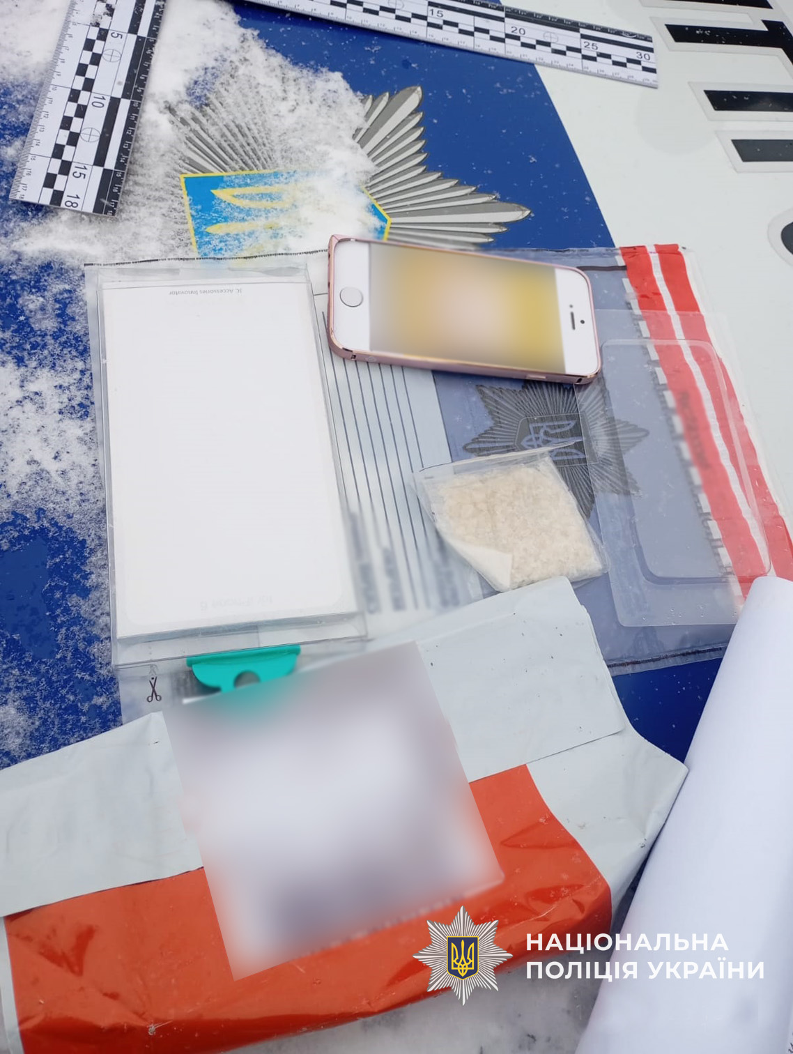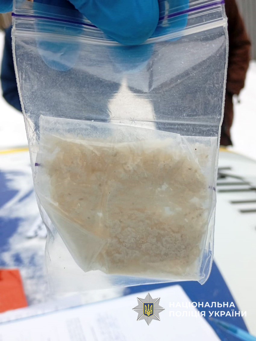 Під час відпрацювання території Добрянської громади в одному з поштових відділень правоохоронці виявили чоловіка, у якого під час отримання посилки було виявлено кристалічну речовину білого кольору, що схожа на PVP-солі.